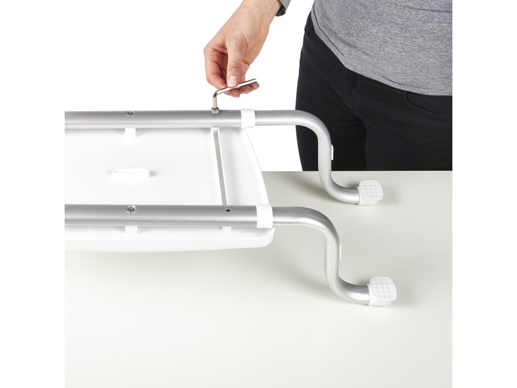 Koupelnové a sprchové sedátko je určeno na sezení do vany. Tento produkt je vyroben z kvalitního plastu a eloxovaného hliníku s protiskluzovými prvky. Sedátko je vhodné do vlhkého prostředí a snadno se čistí.