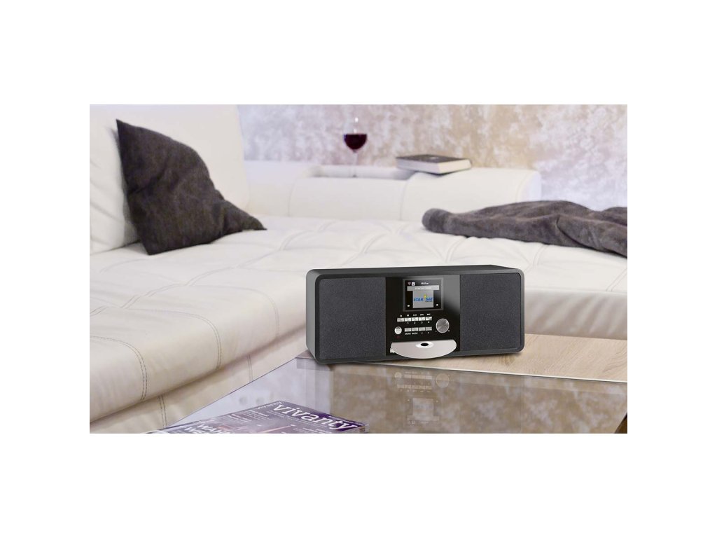 Multifunkční radiopřijímač pro příjem DAB+, FM a internetového rádia, s podporou Bluetooth, přehrávačem CD, stereo reproduktory, UPnP/DLNA a mnoha uživatelsky přívětivými funkcemi.
