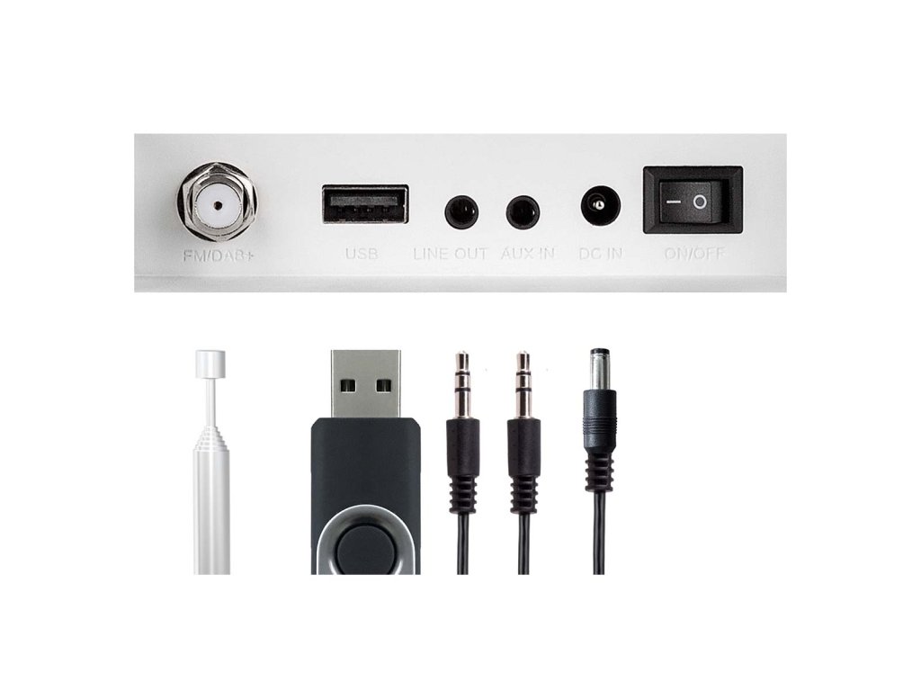 • Komplexní hudební přehrávač USB pro soubory MP3, WMA, AAC nebo WAV, možnost nahrávání rozhlasového vysílání (DAB+/FM/Web) pomocí tlačítka nahrávání nebo časovače