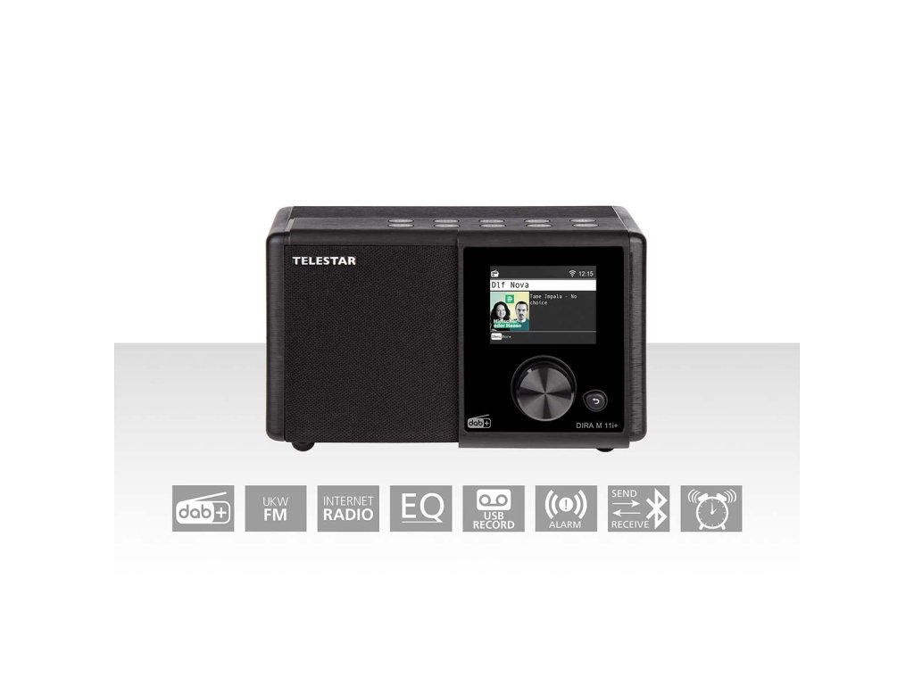Kompaktní pouzdro radiopřijímače TELESTAR DIRA M 11i+ obsahuje nejnovější rádiovou technologii, která umožňuje příjem digitálních rozhlasových stanic DAB+ a internetových rozhlasových stanic, stejně jako analogových rozhlasových stanic FM.