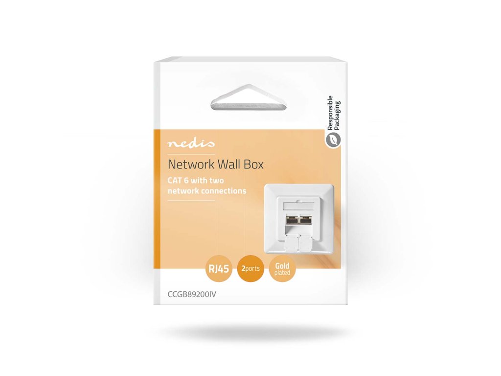 Nástěnná zásuvka Nedis® se 2 síťovými konektory RJ45 je určena pro podomítkovou montáž. Zásuvka je vhodná pro kabely CAT 6.