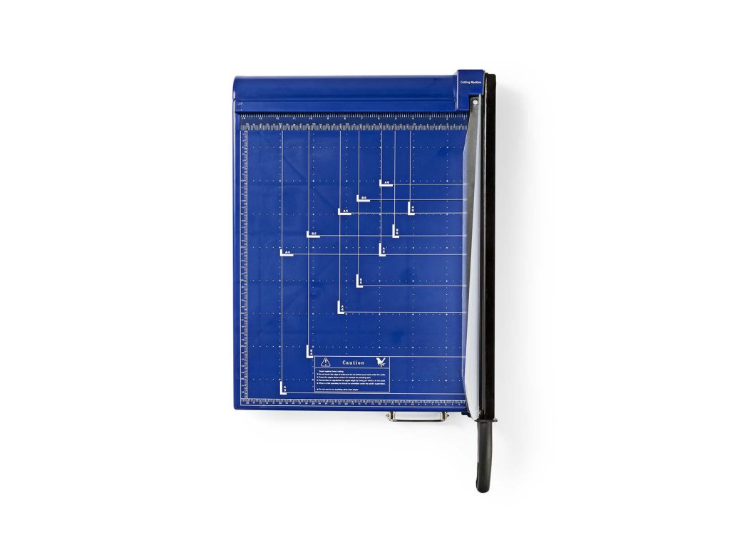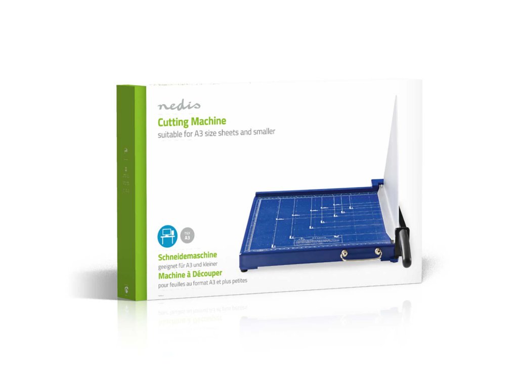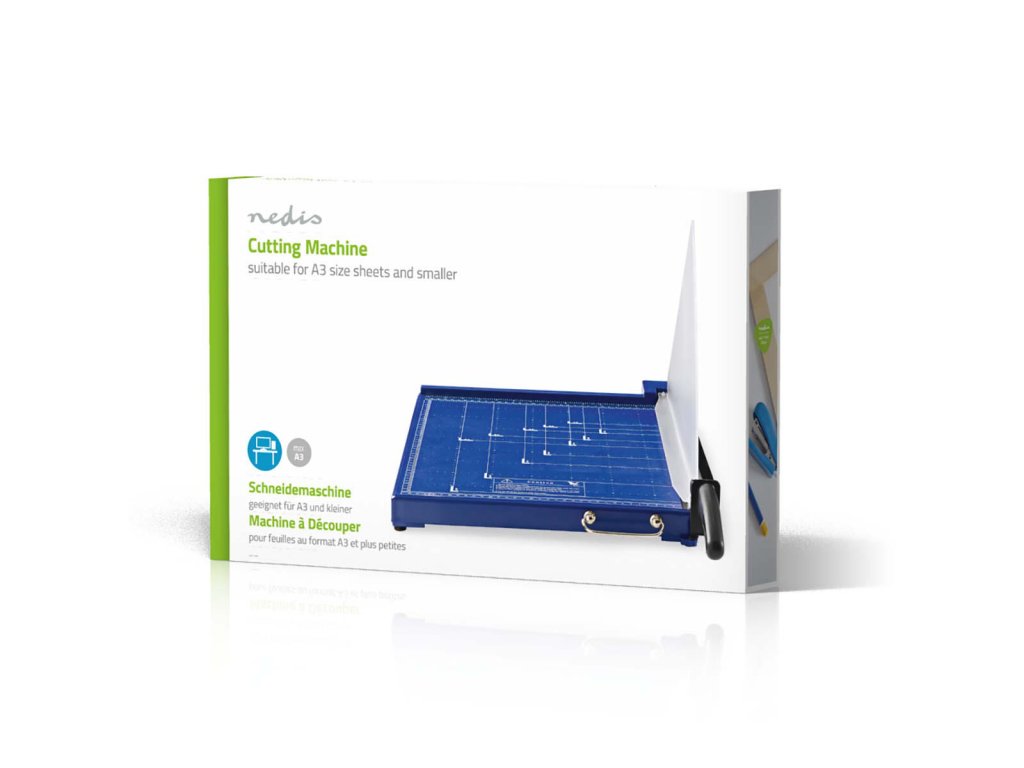 Nedis® profesionální kovová páková řezačka papíru do formátu A3. Deska 430 x 360 x 50 mm s měřítkem v centimetrech a palcích a vyznačenými standardními velikostmi papíru. Nastavitelný doraz pro přesné nastavení velikosti řezaných dokumentů, akrylový bezpečnostní kryt pro ochranu před úrazem prstů.