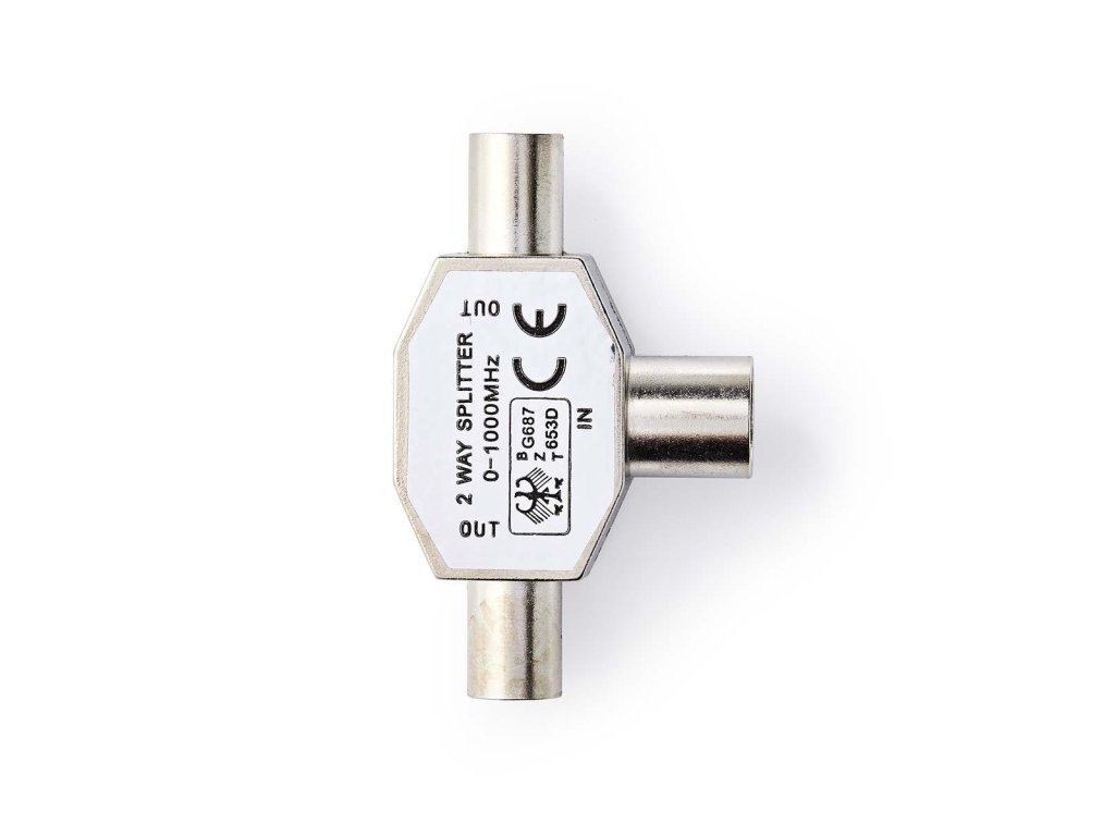 Nedis® hybridní koaxiální T - rozbočovač s konektory 2 x Coax (IEC) zástrčka - 1 x Coax (IEC) zásuvka. Frekvenční rozsah 0 - 1000 MHz.