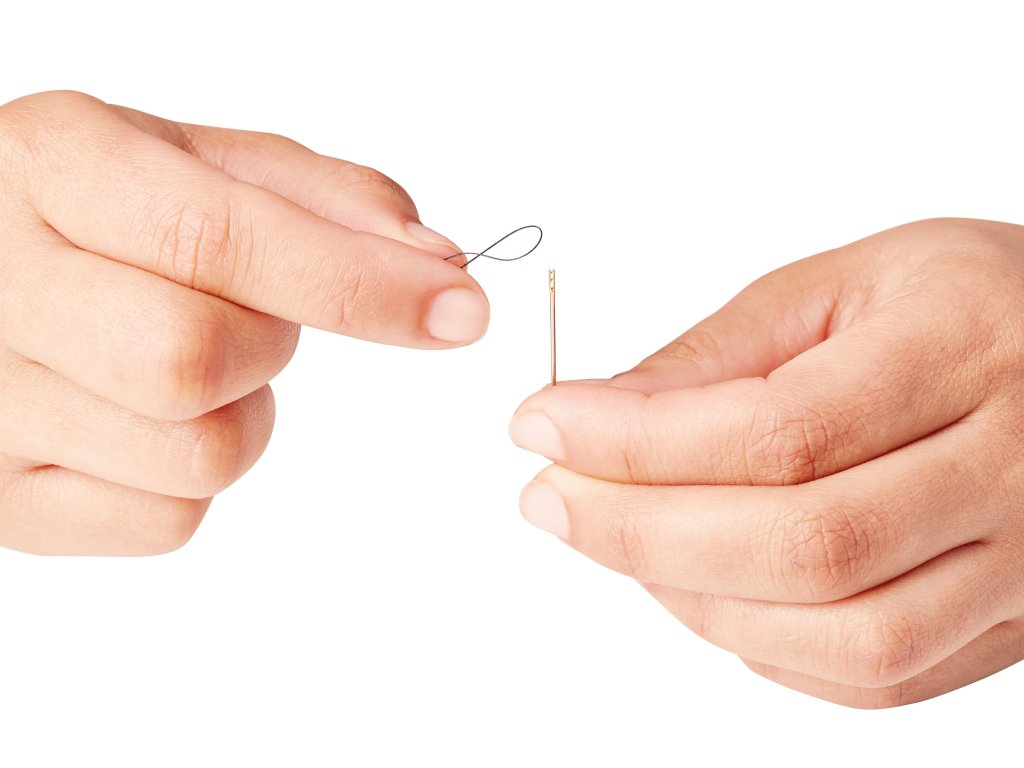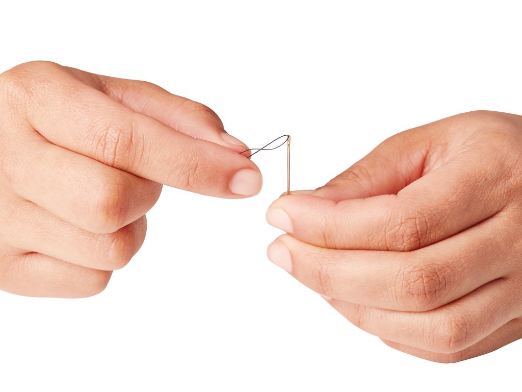 Jehly s normálními očky mají jednu zásadní nevýhodu: zavádění nitě skrz očko vyžaduje přesnost a někdy může trvat dlouho. Jehla Easy Needle tento problém řeší. Když se nit položí na horní část jehly a ta se pomalu stáhne dolů, nit se automaticky prostrčí otvorem.