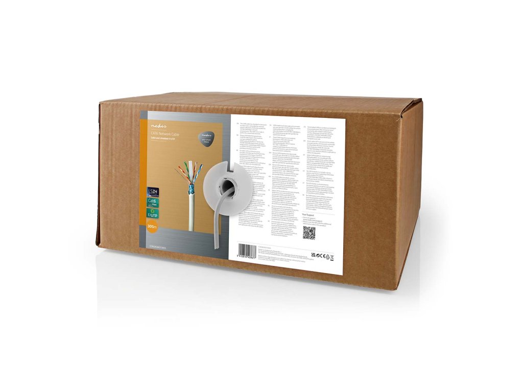 Nedis měděný stíněný síťový kabel F/UTP Cat6 drát LSZH šedý, 305 m (CCBG8526GY305S)
