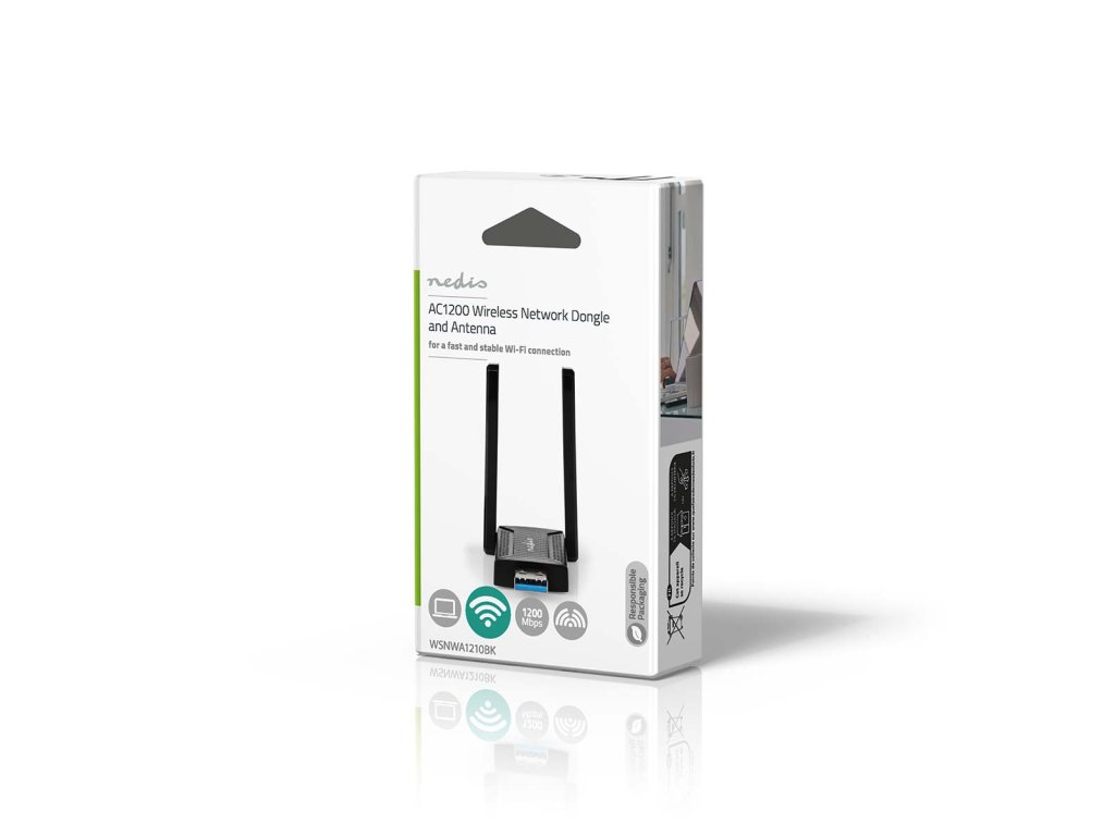 Nedis WSNWA1210BK Wi-Fi USB3.0 dongle AC1200 Dual Band 2.4/5 GHz