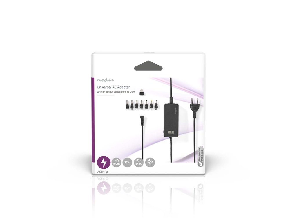 Kompaktní, univerzální a super účinný napájecí adaptér Nedis® s výstupem 5-24 V a max. zatížením 36 W. Adaptér je chráněn proti zkratu a přetížení a dodává se se 7 napájecími konektory. Díky tomu je adaptér vhodný pro širokou škálu použití včetně napájení většiny notebooků.