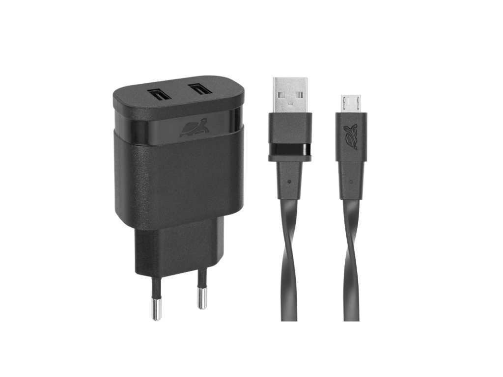 Riva Power 4123 BD1 duální síťová nabíječka 3,4A/ 2 USB, černá + micro USB kabel