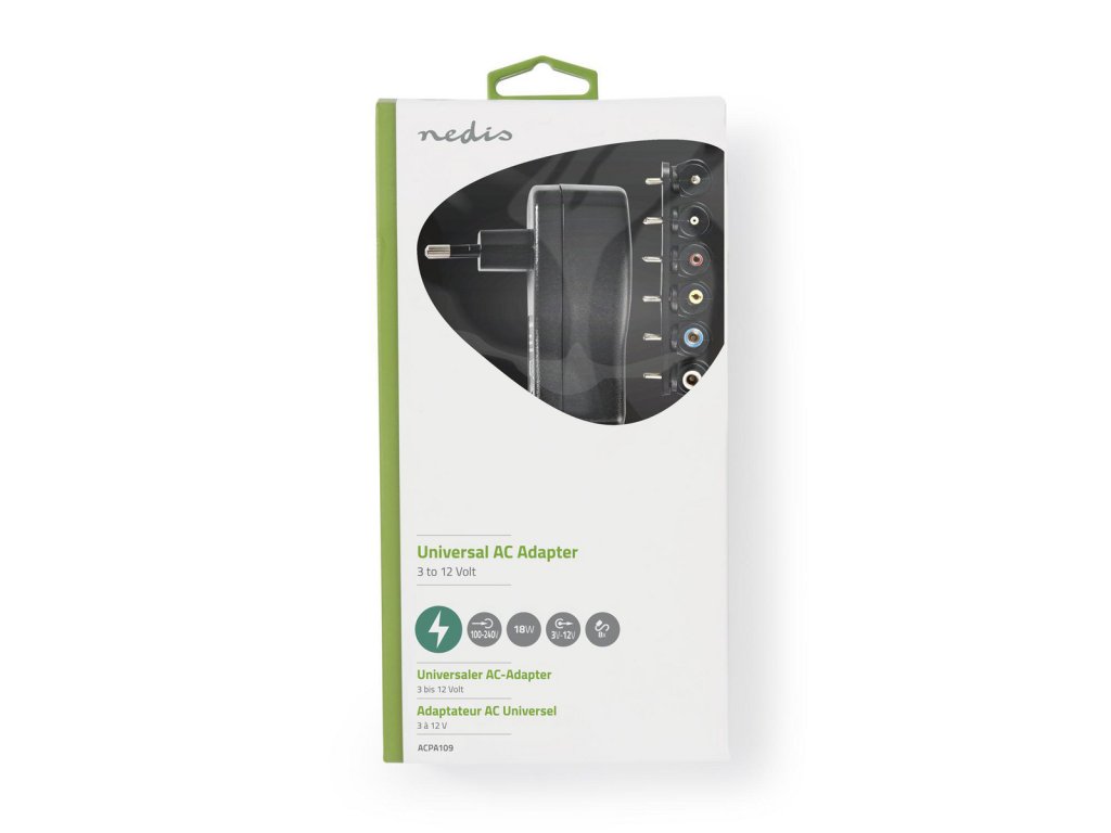 Nedis ACPA109 univerzální napájecí adaptér 3/4.5/6/7.5/9/12 V DC, 0.7 A–1.5 A