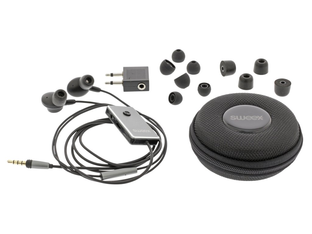 Kvalitní sluchátka do uší Sweex s aktivním potlačením hluku. Užívejte si své oblíbené skladby v perfektně vyvážené zvukové kvalitě s tímto Sweex headsetem do uší s aktivním potlačením hluku. Aktivní potlačení hluku sníží rušivé okolní zvuky o 20 dB, takže se do hudby můžete opravdu ponořit.
