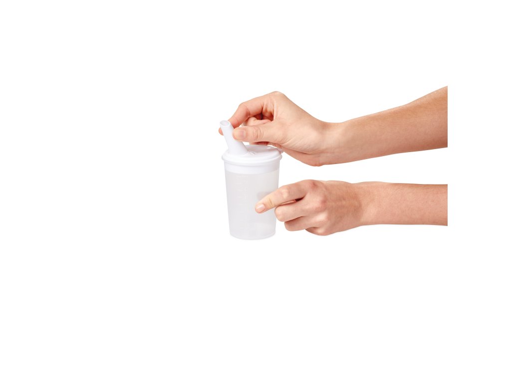 Hrnek s delší hubičkou 8 mm a měrnou stupnicí je určen pro tekutiny jako je káva, čaj a nealkoholické nápoje. Je vhodný pro pití vsedě i vleže. Množství kapaliny lze regulovat částečným nebo úplným zakrytím otvoru na víku prstem.
