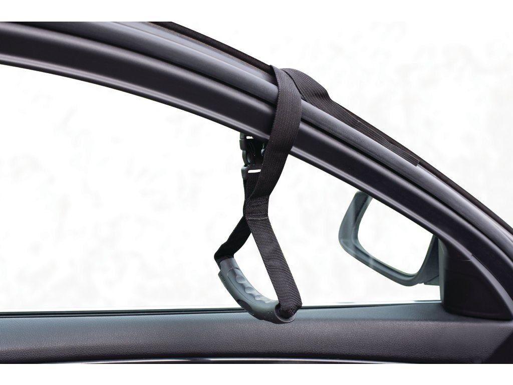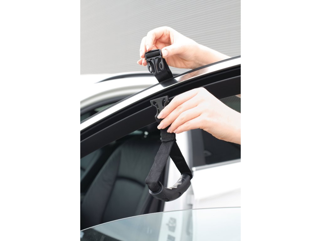 Tuto pomůcku pro vystupování z vozu lze připevnit na všechny druhy rámů dveří auta a nabízí podporu při nastupování a vystupování z vozu. Srolujte okno auta a připevněte pomůcku na přední část rámu. Nastavitelný pásek je vyroben z kvalitního nylonu, takže je vhodný pro dlouhodobé používání. Popruh lze nastavit do požadované výšky úchopu a má pohodlné madlo.