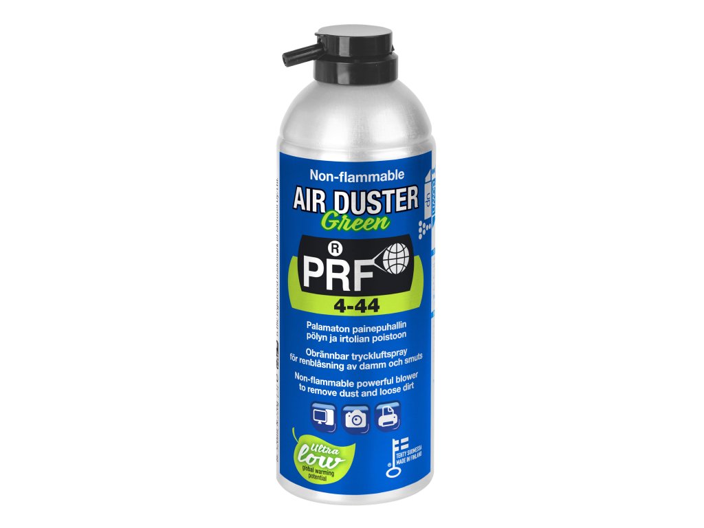 Nehořlavý stlačený vzduch ve spreji PRF 4-44 green vhodný pro čištění a vyfoukávání elektroniky, výpočetní techniky, optiky, šicích strojů nebo hodinkových strojků od prachu a nečistot. Obsah 520 ml.