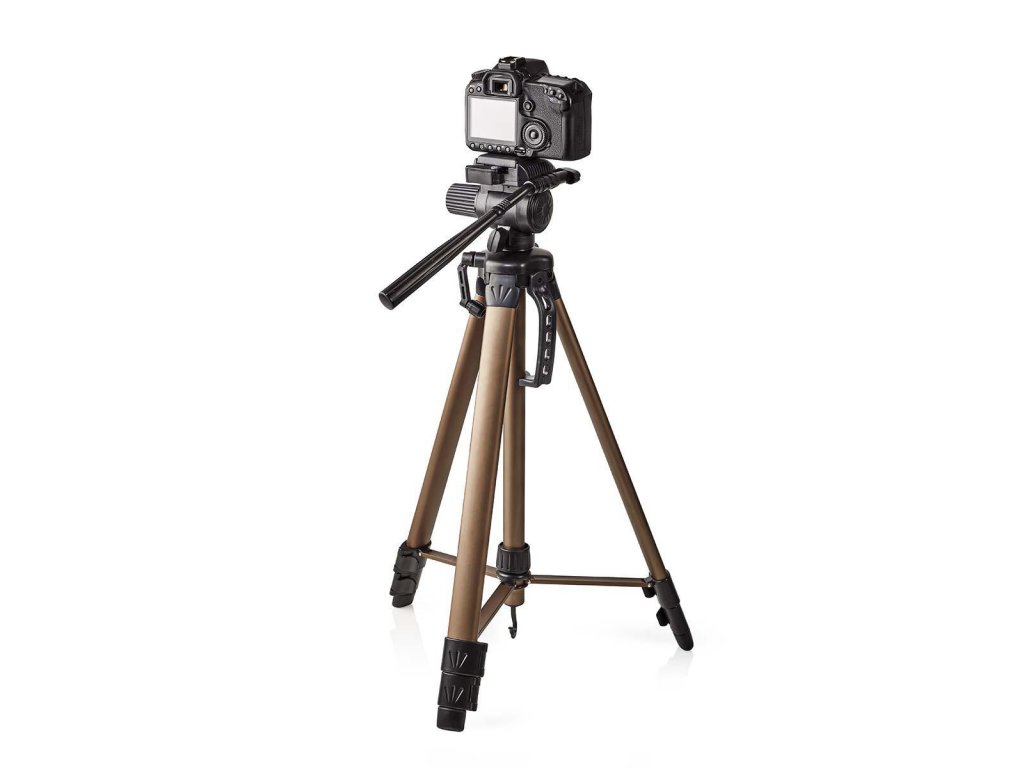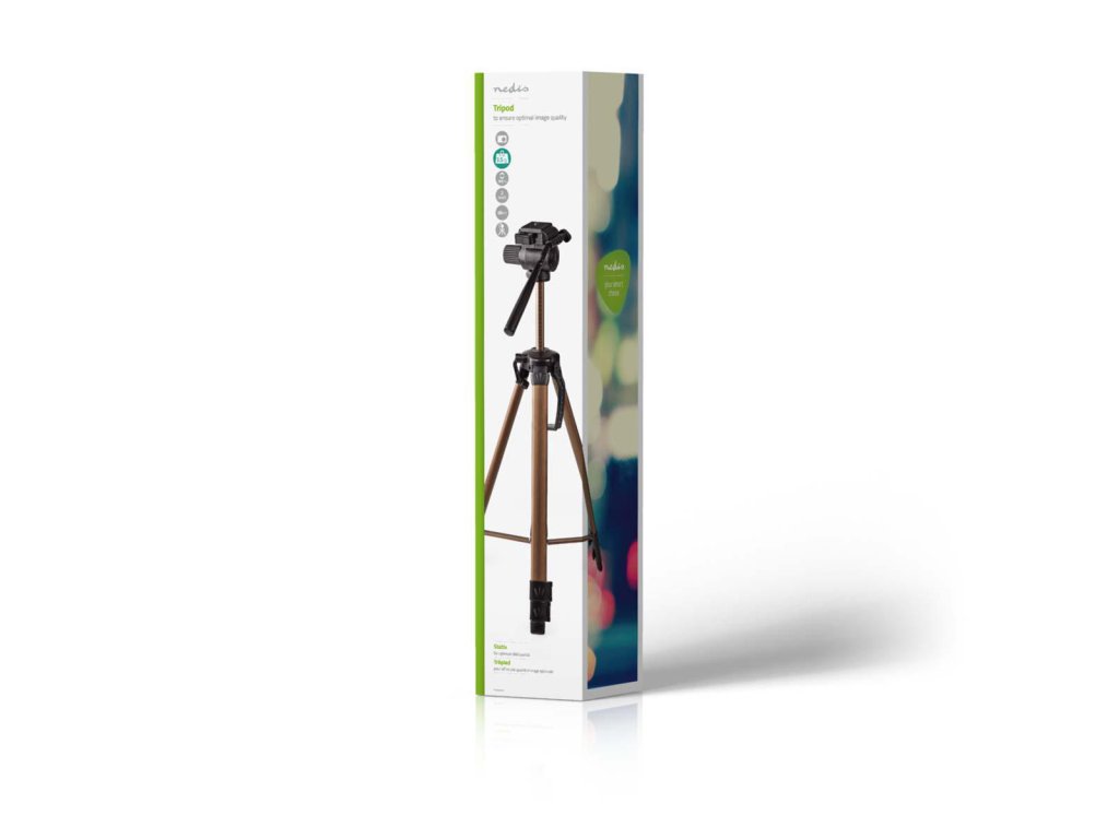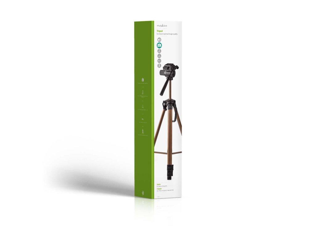 Hliníkový tripod Nedis® je třísekční stativ, který se skládá ze středového sloupku se zdviží a ozubeným převodem s kličkou, 3 teleskopických noh s aretací polohy a 3-cestné panoramatické naklápěcí hlavy Pan & Tilt.