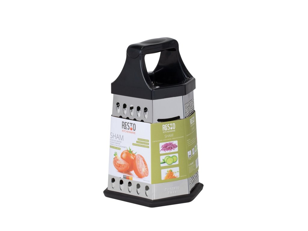 Vše, co ve společnosti Resto děláme, je děláno tak, aby podporovalo praktičnost a pohodlí, proto jsme se i v případě rukojeti tohoto struhadla postarali o to, aby byla výslovně navržena tak, aby vám poskytovala pohodlí a vy jste ji mohli snadno používat po dlouhou dobu. Měkká ergonomicky navržená rukojeť pro stabilitu zajišťuje snadné držení. Není nic horšího, než když vám struhadlo náhle vyklouzne zpod ruky a způsobí vám pořezání a šrámy, v lepším případě jen nepořádek. Proto jsme struhadlo SHAM vybavili protiskluzovou gumovou základnou, která poskytuje stabilitu, pomáhá udržet struhadlo při práci na místě a tak předchází těmto druhům nehod. Struhadlo SHAM lze mýt jak rukama, tak v myčce, čištění je velice snadné.