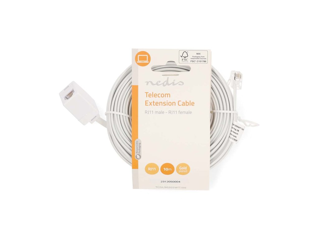 Nedis telefonní prodlužovací kabel zástrčka RJ11 zástrčka - zásuvka RJ11, 10 m, bílý (TCGL90205WT100)