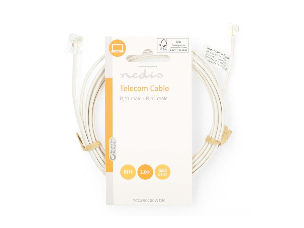 Nedis telefonní propojovací kabel zástrčka RJ11 - zástrčka RJ11, 2 m, bílá (TCGL90200WT20)