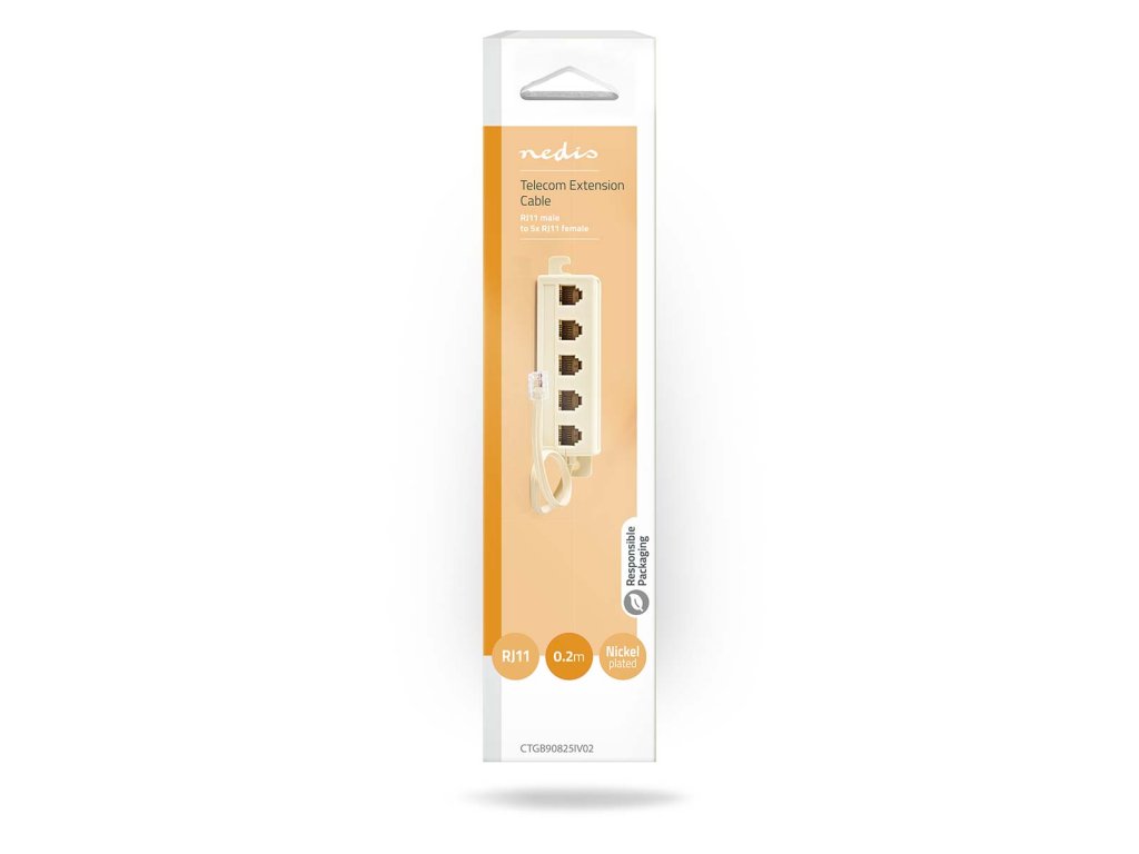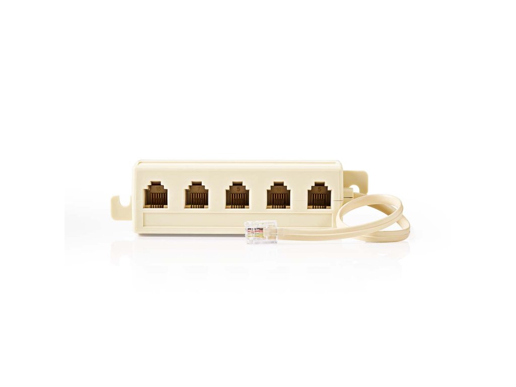 Nedis® rozbočovací telefonní kabel RJ11 s konektory RJ11 (6P4C) zástrčka - 5 x RJ11 (6P4C) zásuvka. Vhodný k rozbočení telefonního signálu průměr 4.8 x 2.3 mm, slonová kost, délka 2 m.