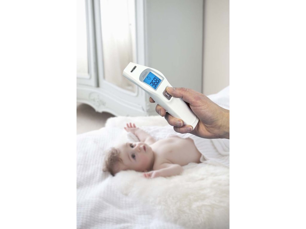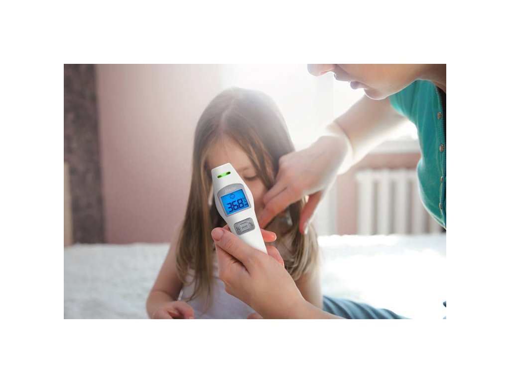 Měření horečky na čele je velmi přesné, s číslem za desetinnou čárkou. Výsledek měření se dostaví do tří sekund, takže tento infračervený teploměr můžete použít i pro velmi aktivní děti. Zařízení automaticky ukládá posledních 20 naměřených hodnot. To je praktické, pokud chcete měřit, jak se horečka vyvíjí po delší dobu, a osvětlený displej vám umožní bez problémů provést měření horečky ve tmě.