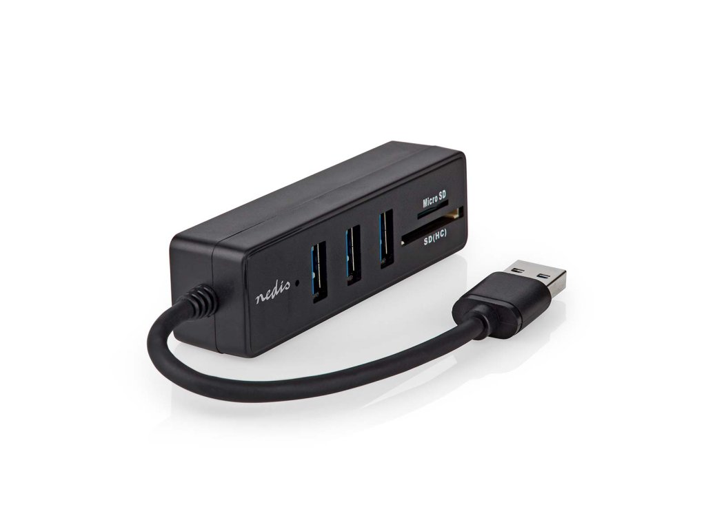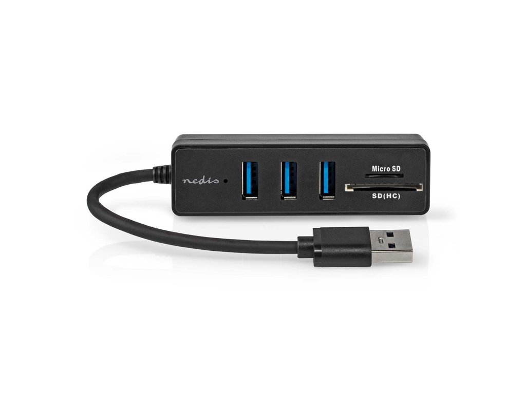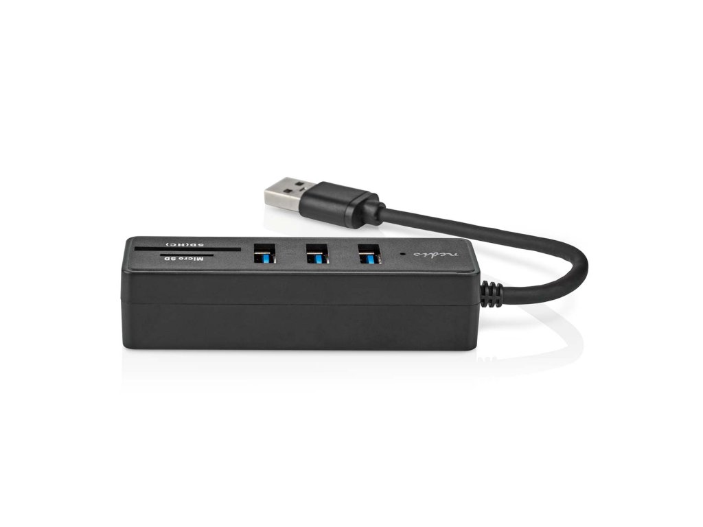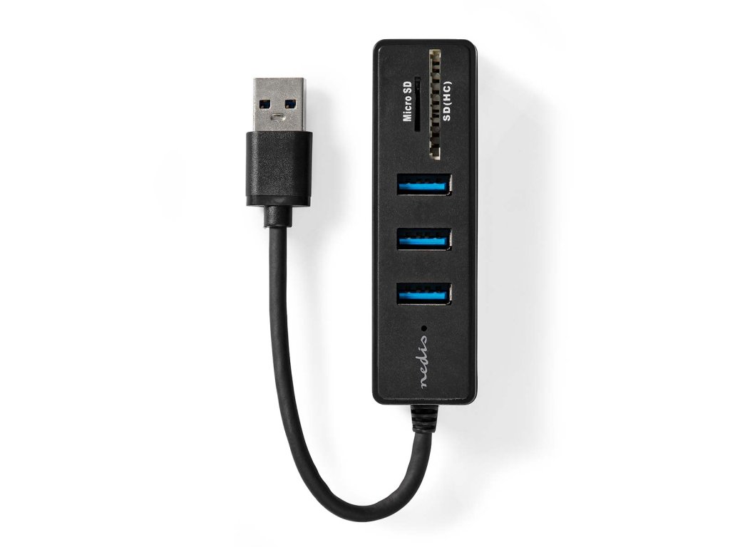 Nedis CCGB61250BK01 USB hub 1x USB-A na 3x USB-A + čtečka paměťových karet SD/MicroSD, 5 Gbps