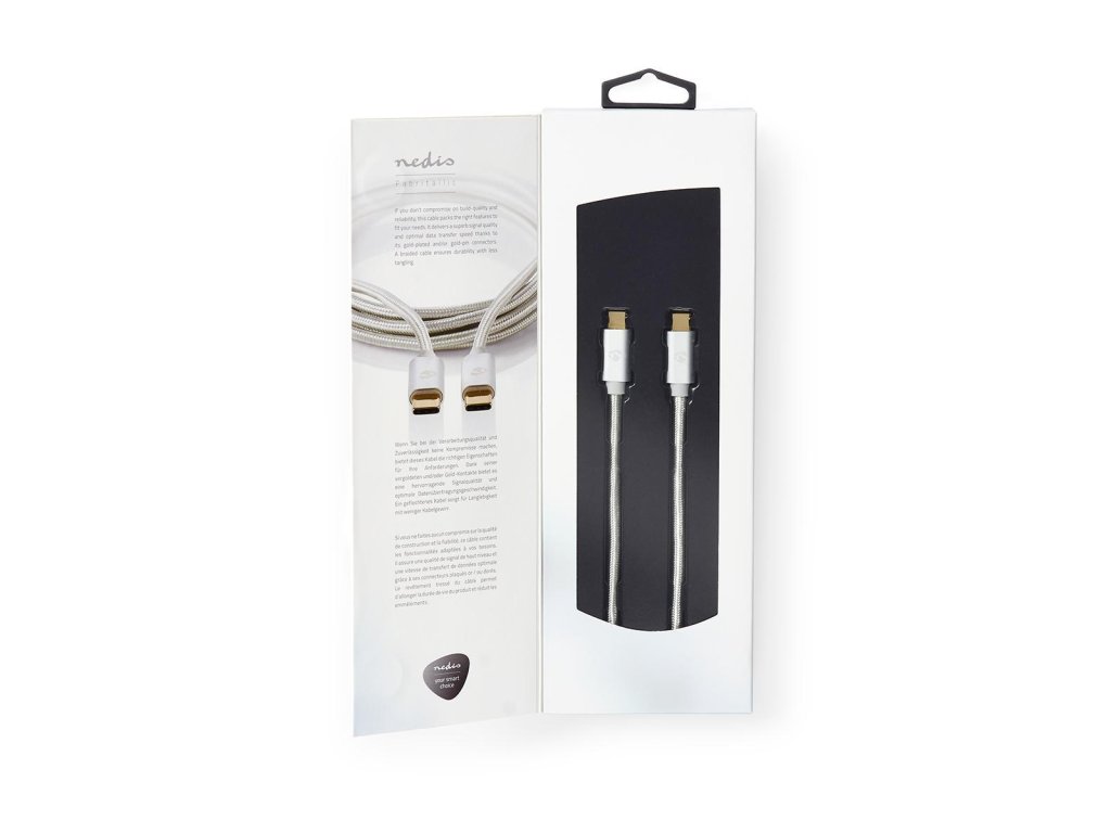 Nedis Fabritallic CCTB64700AL20 propojovací kabel USB 3.1 (Gen1) 5 Gb/s, zástrčka USB C - zástrčka USB C, 2 m, stříbrná