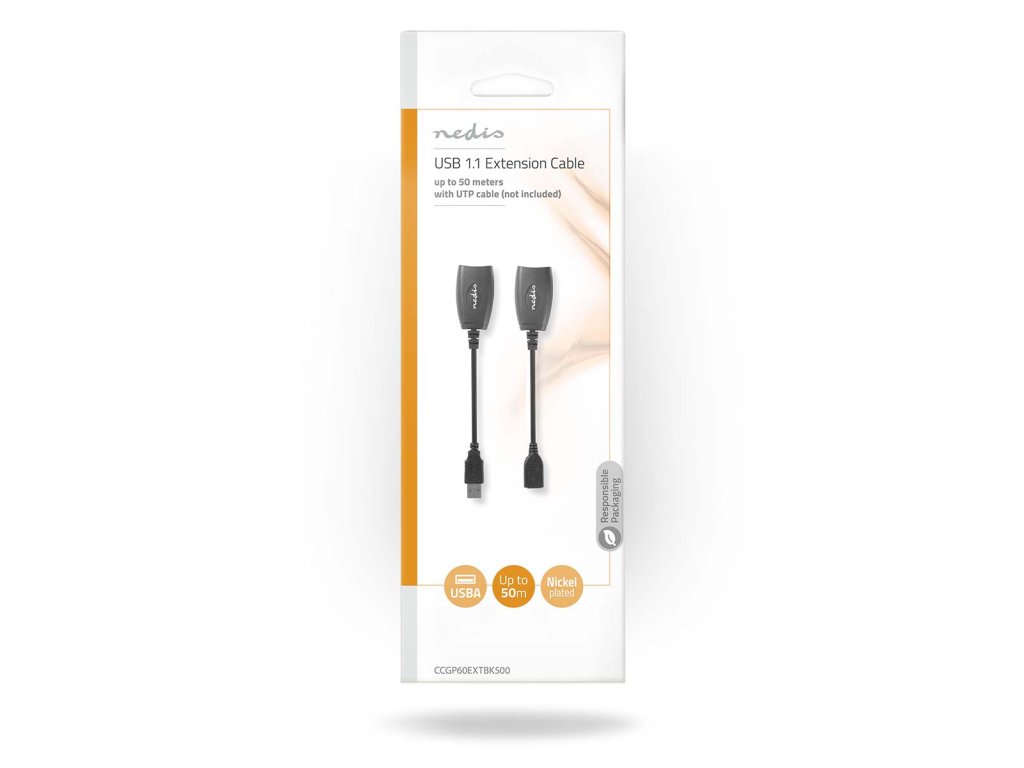 Nedis aktivní prodlužovací kabel USB 1.1 přes UTP na vzdálenost 50 m (CCGP60EXTBK500)