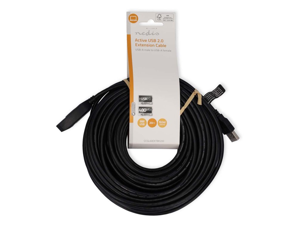Nedis aktivní prodlužovací kabel USB 2.0, 20 m (CCGL60EXTBK200)