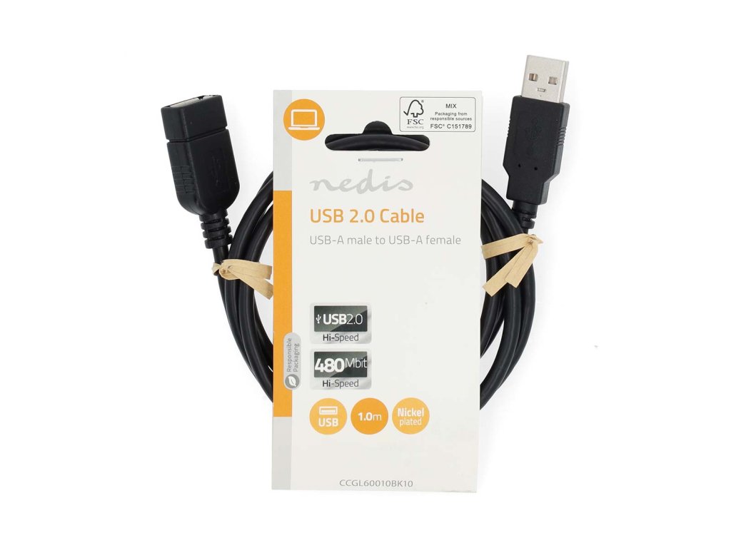 Nedis® prodlužovací kabel zástrčka USB 2.0 A - zásuvka USB 2.0 A pro přenos dat rychlostí 480 Mbps. Délka 1 m.