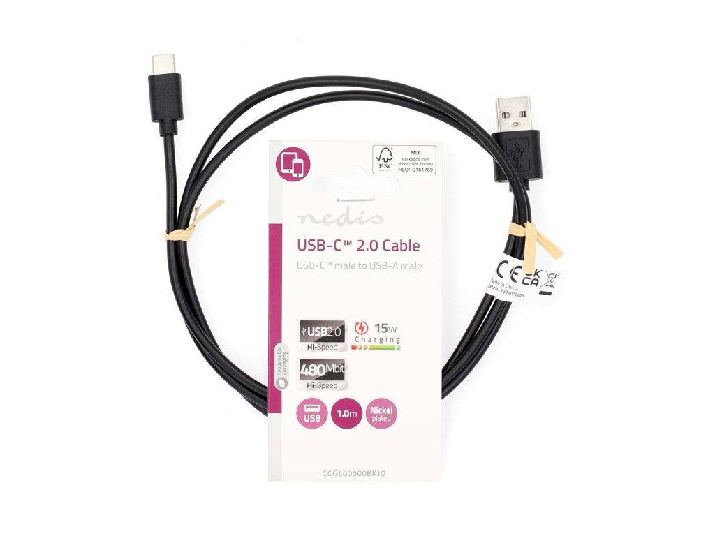 Nedis propojovací kabel USB 2.0 zástrčka USB A - zástrčka USB C, 15W, 1 m, černá (CCGL60600BK10)