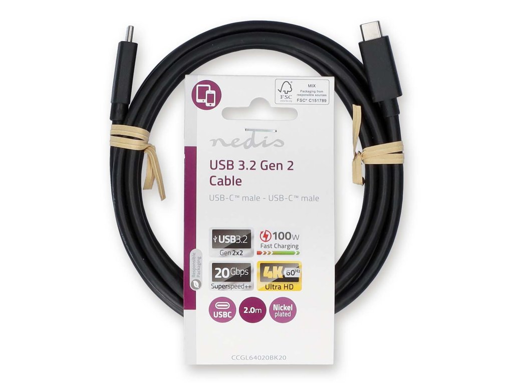 Nedis® USB 3.2 (Gen.2x2) kabel USB-C™ na USB-C™ lze použít k nabíjení telefonu a jiných zařízení, která mají nabíjecí port USB-C™. Zároveň lze kabel využít k datovému propojení dvou zařízení s porty USB-C™, například smartphone s notebookem. USB-C je posledním přírůstkem do rodiny USB připojení a lze jej tudíž najít pouze na nejnovějších zařízeních. Tento kabel je vhodný pro přenosy dat rychlostí 20 Gb/s, což je přenos 40krát rychlejší než při použití USB 2.0. Kabel podporuje rychlé nabíjení telefonu s výkonem 100 W/5 V. Kabel disponuje zlatými konektory, které zaručí optimální přenos dat a napájení. Délka 2 m.