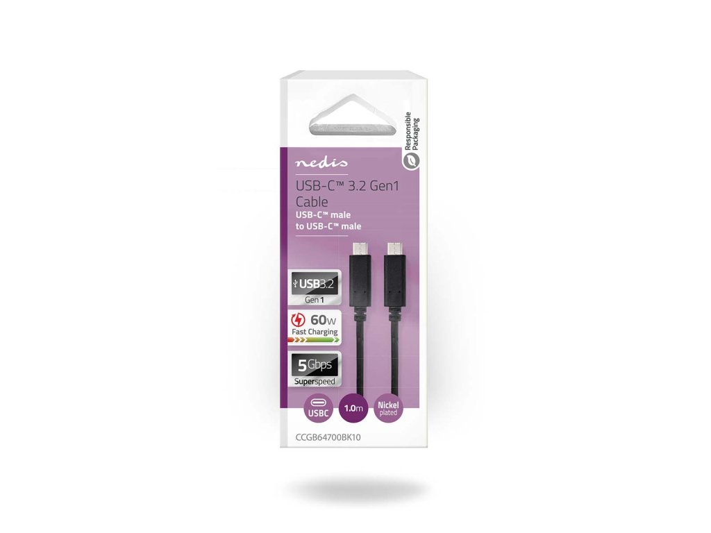 Nedis propojovací kabel USB 3.2 (Gen1), zástrčka USB C - zástrčka USB C, 4K 60Hz, 5 Gbps, 1 m, černá (CCGB64700BK10)