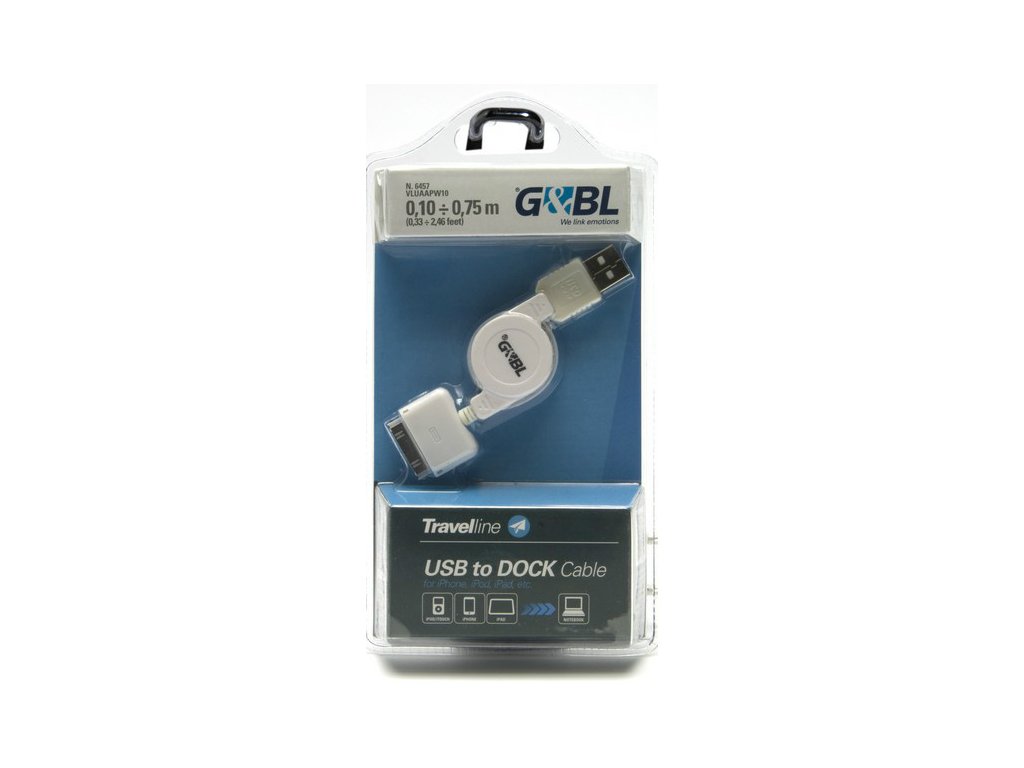 Cestovní svinovací propojovací a napájecí kabel o délce 0,1 až 0,75 m. USB konektor a napájecí konektor pro iPod, iPhone, iPad. Je ideální pro synchronizaci a přenos hudebních souborů z vašeho iPodu / iPhonu. Synchronizace a nabíjení iPodu / iPhonu probíhá ve stejnou dobu. Pro použití v autě i doma.