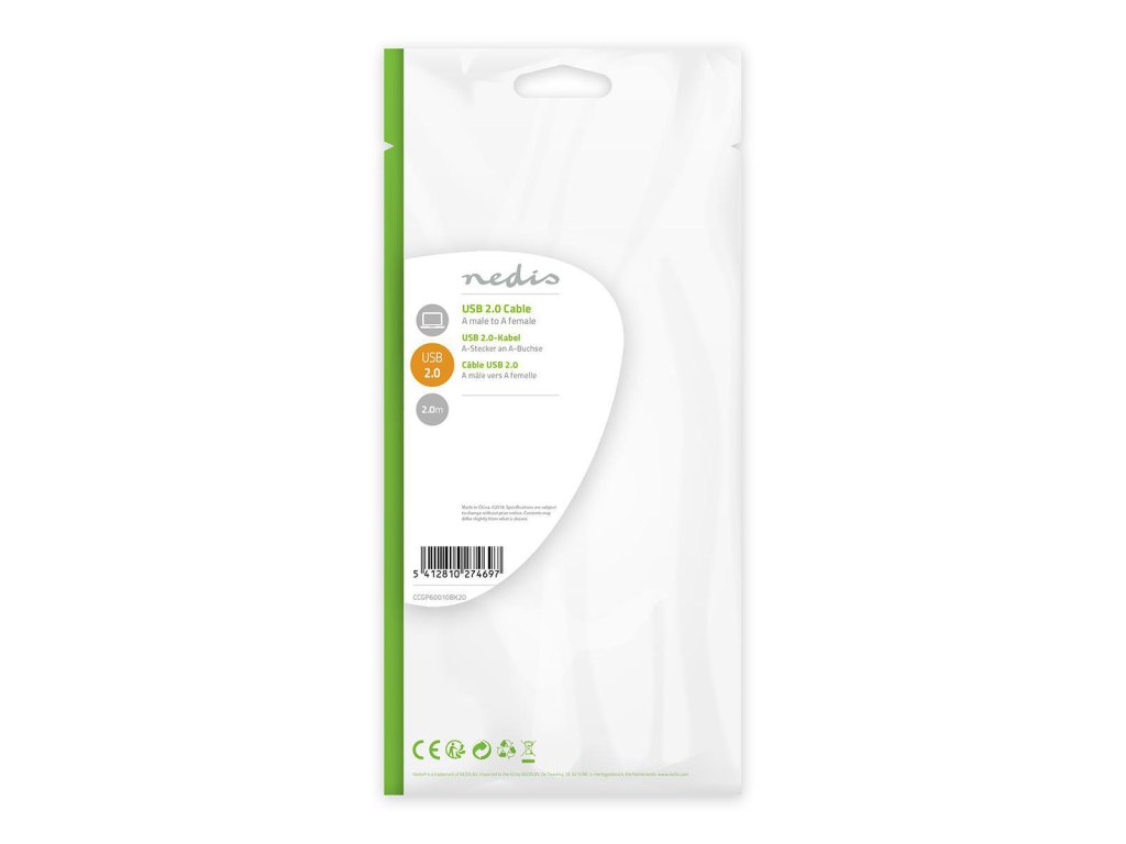 Nedis® prodlužovací kabel zástrčka USB 2.0 A - zásuvka USB 2.0 A pro přenos dat rychlostí 480 Mbps. Délka 2 m.