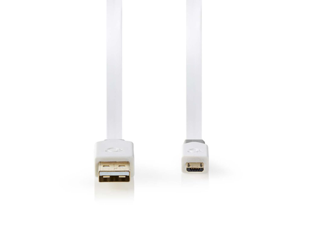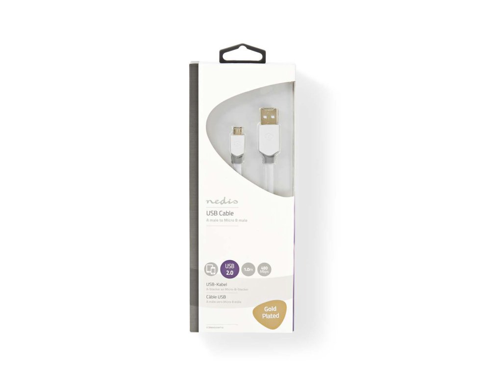 Nedis CCBW60500WT10 plochý propojovací kabel USB 2.0 zástrčka USB A - zástrčka USB micro B, 1 m, bílá