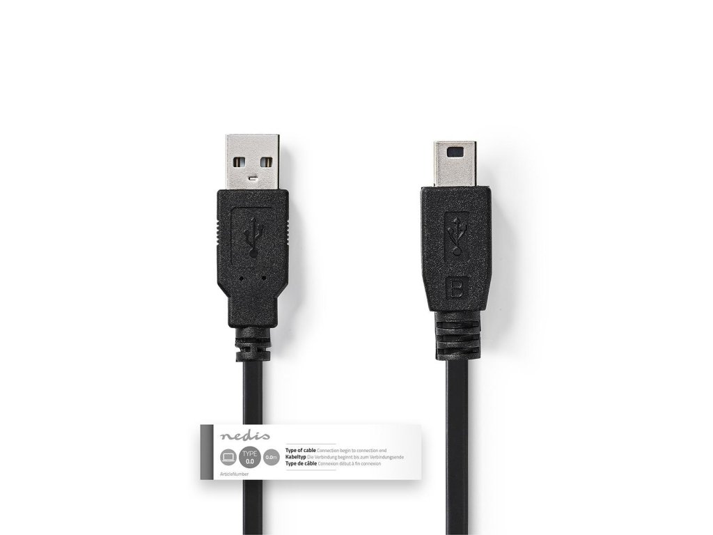 Nedis® propojovací kabel zástrčka USB 2.0 A - zástrčka USB mini B 5-pin pro přenos dat rychlostí 480 Mbps. Délka 3 m.