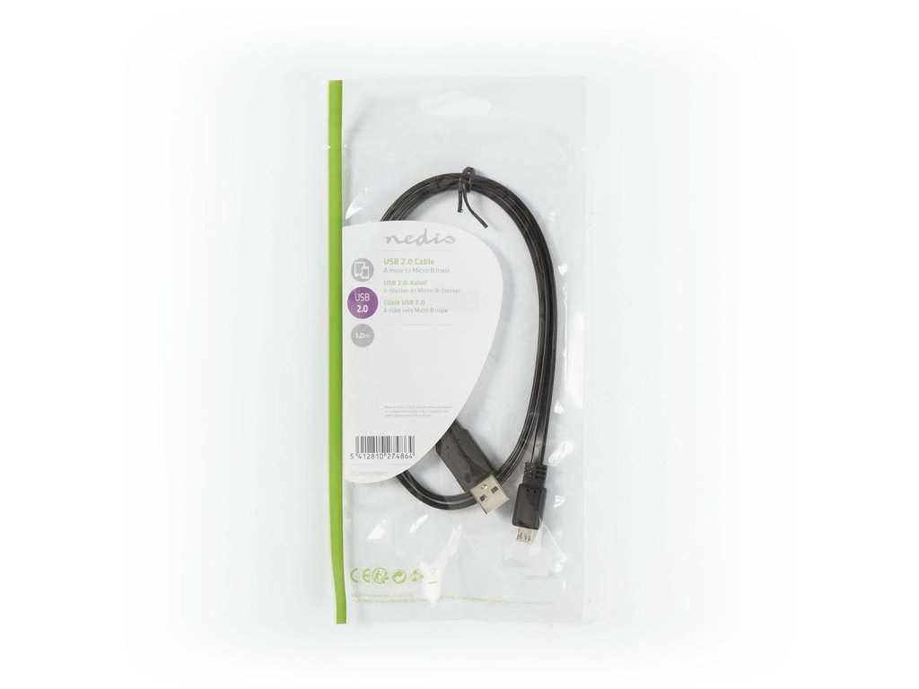 Nedis® propojovací kabel zástrčka USB 2.0 A - zástrčka USB micro B pro přenos dat rychlostí 480 Mbps. Délka 1 m.