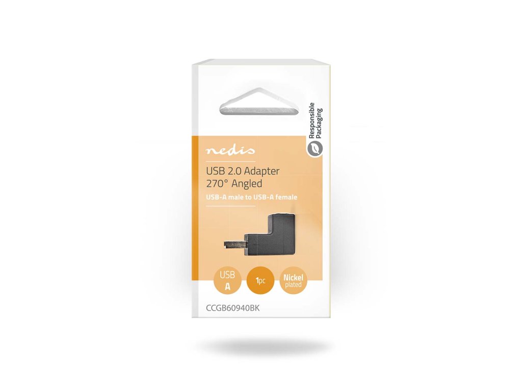 Tento adaptér představuje praktické řešení v případech, kdy musejí být kabely USB 2.0 připojeny k zařízením ve velmi úzkých prostorech. Chrání kabel před zlomením.