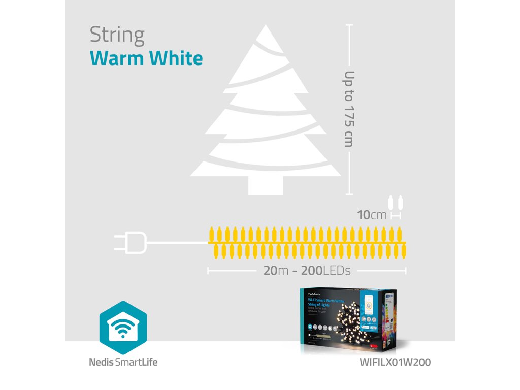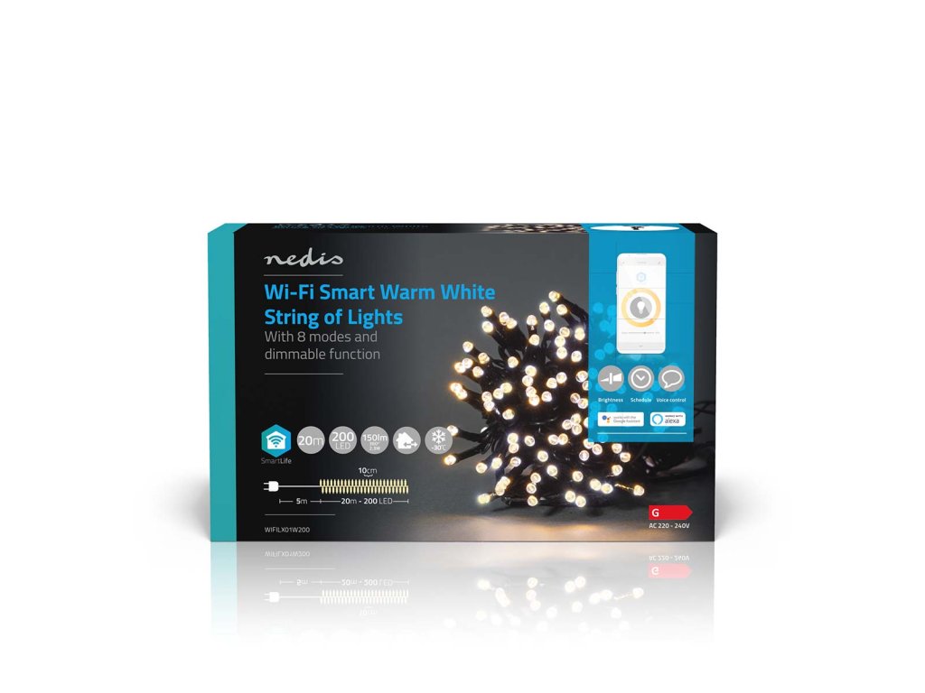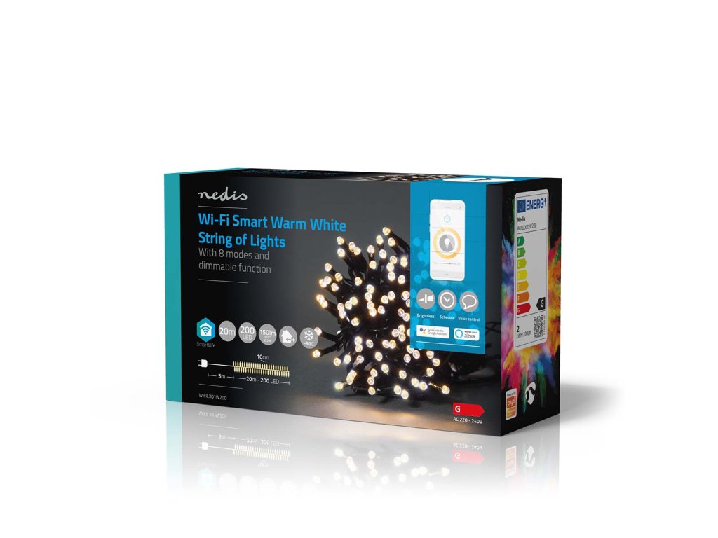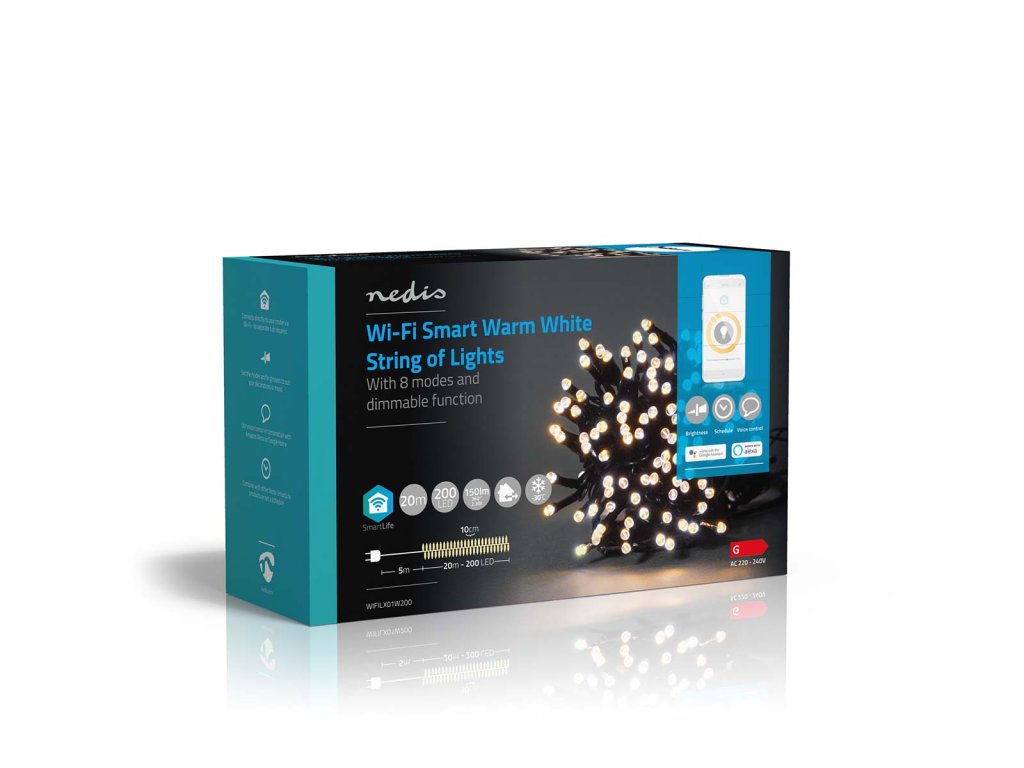 Nedis SmartLife chytrý vánoční řetěz, 200 LED, 20 m, venkovní IP65, teplá bílá (WIFILX01W200)