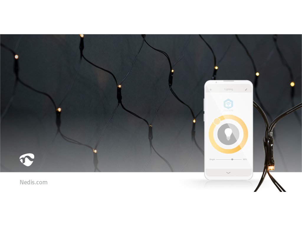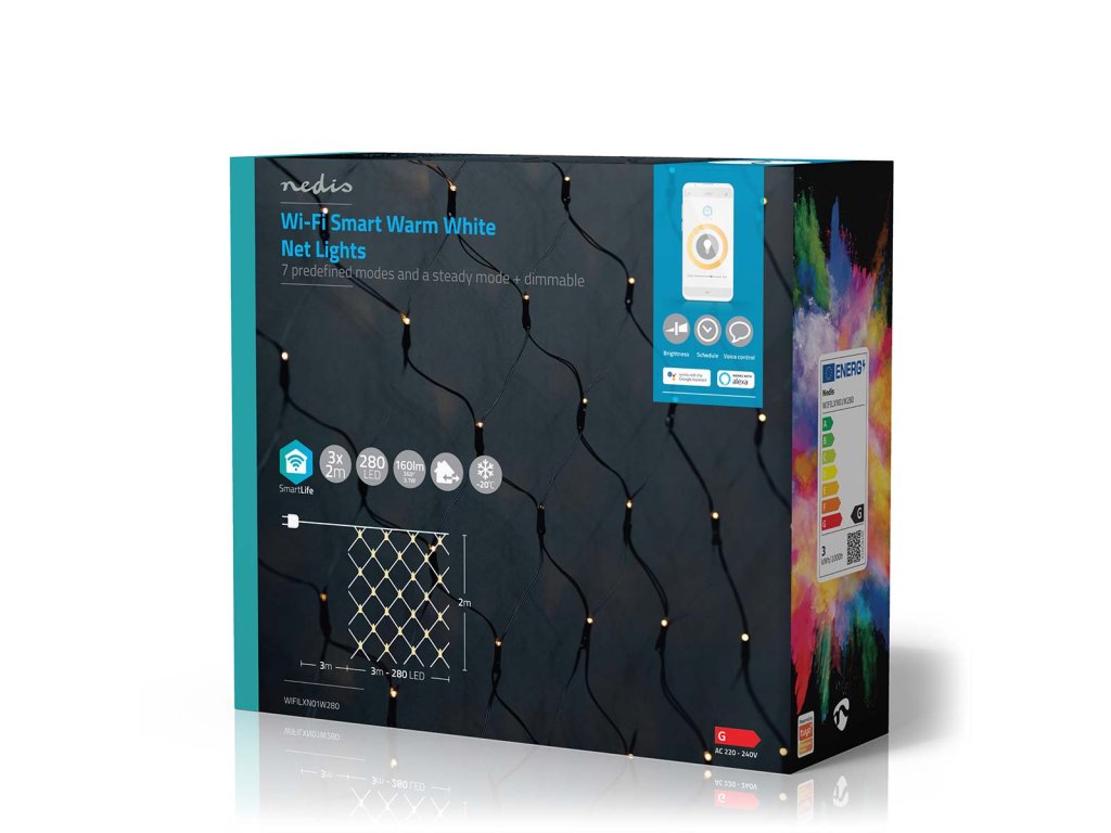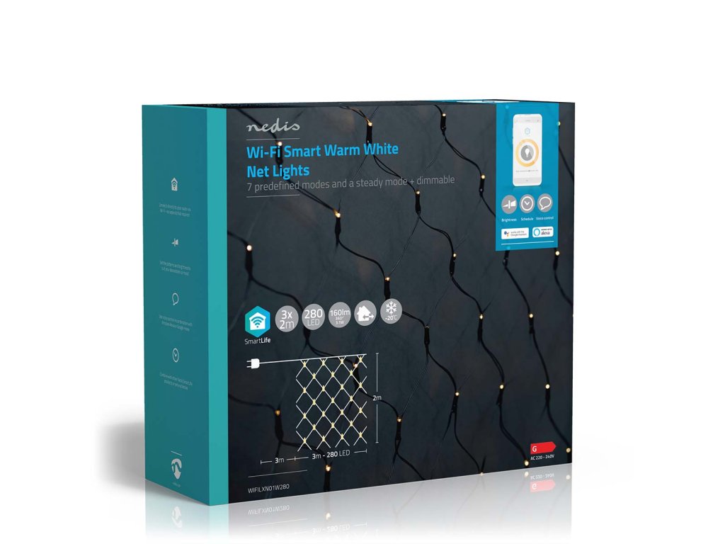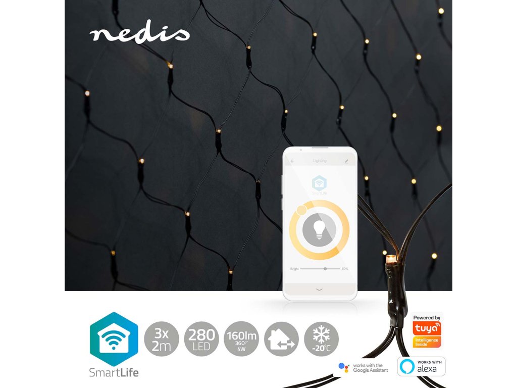 Nedis SmartLife chytrý vánoční řetěz síť 3x2 m, 280 LED, venkovní IP65, teplá bílá (WIFILXN01W280)