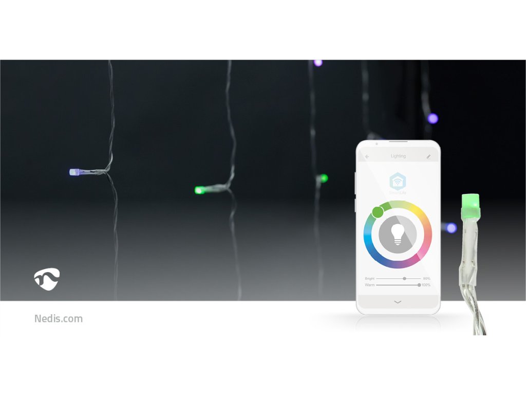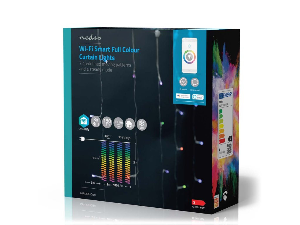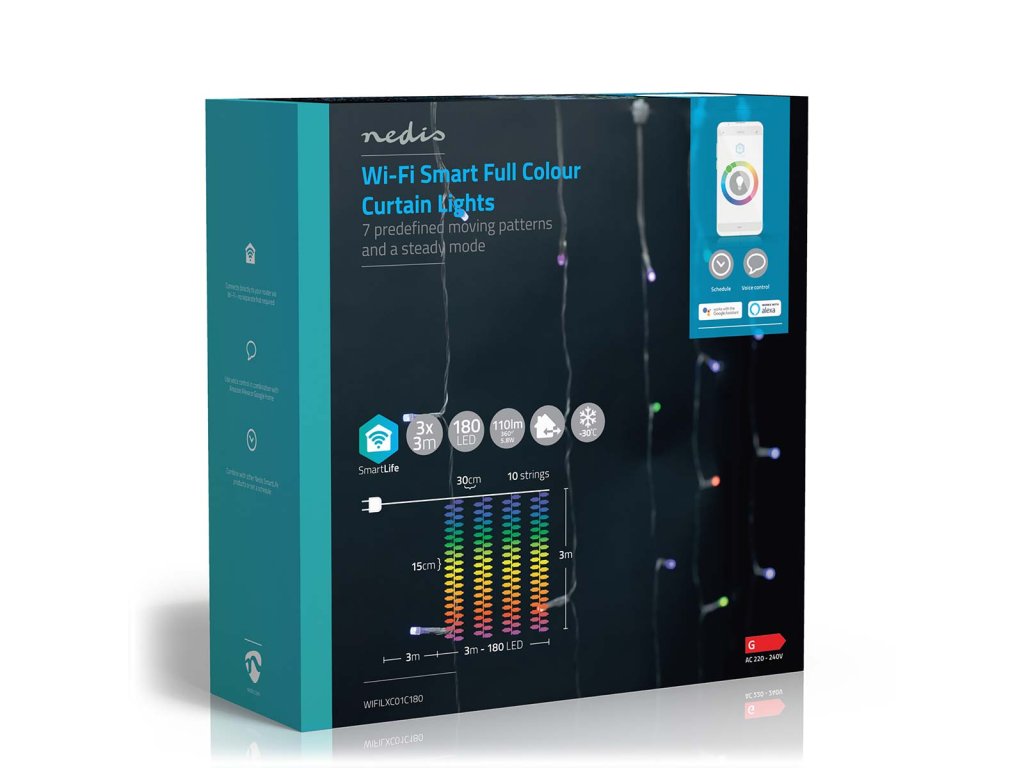 Nedis SmartLife chytrý vánoční závěs 3x3 m, 180 LED, venkovní IP65, barevný RGB (WIFILXC01C180)