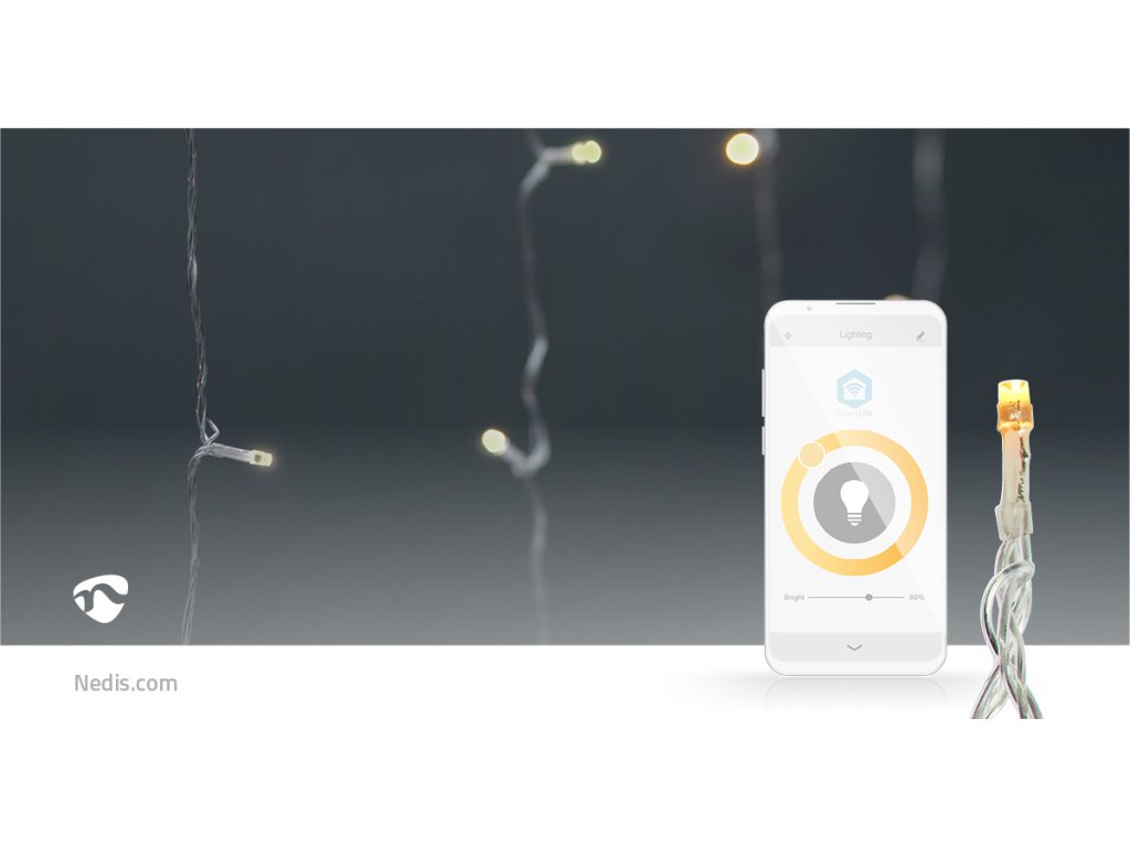 Chytrý Wi-Fi světelný řetěz funguje i bez brány a stane se přímou součástí bezdrátové sítě – díky tomu není nastavení složité ani nákladné. Světelný řetěz můžete ovládat pomocí bezplatné aplikace Nedis SmartLife, která umožňuje nastavovat automatický režim podle časového rozvrhu, západu slunce nebo ostatních produktů Nedis SmartLife. V kombinaci s asistenty Google Home nebo Amazon Alexa můžete dokonce používat hlasové příkazy ke změně vzorů na světelném řetězu.