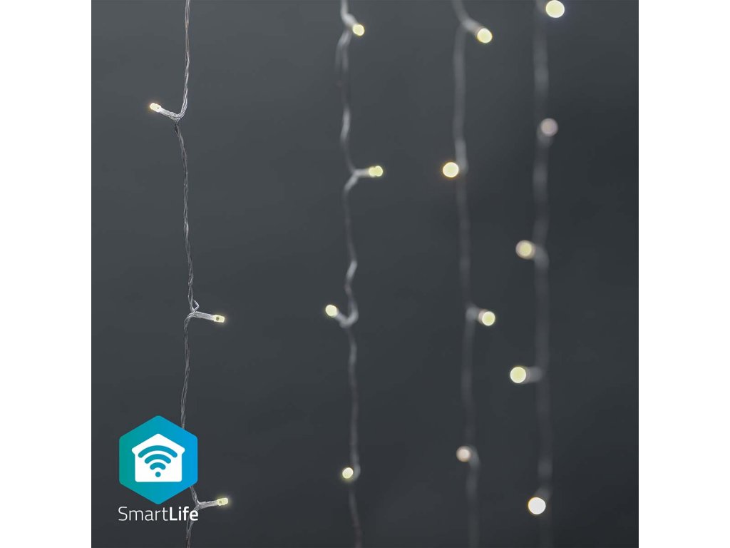 Nedis SmartLife chytrý vánoční závěs 3x3 m, 200 LED, venkovní IP65, teplá bílá (WIFILXC01W200)