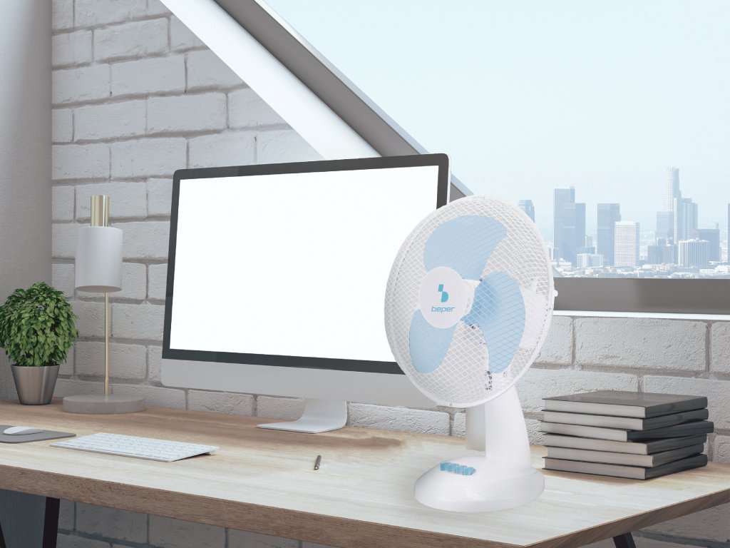 - Stolní ventilátor v elegantním bílo-modrém provedení
