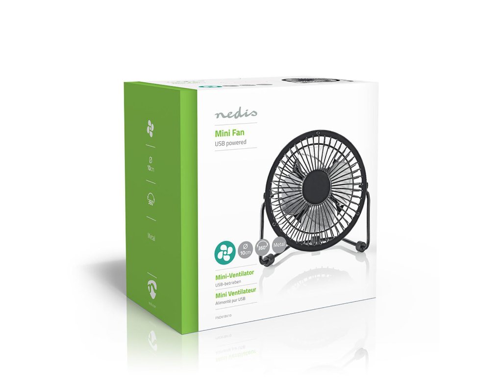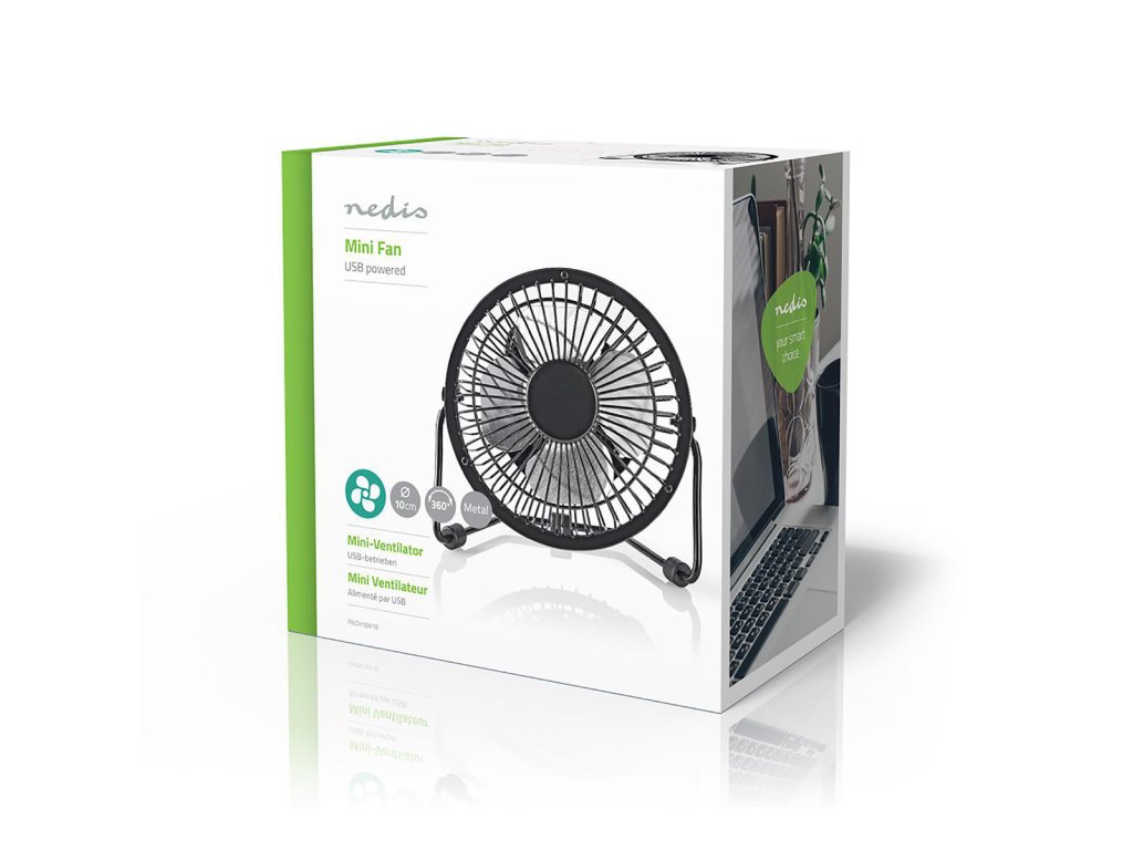 Nedis FNDK1BK10 stolní mini USB ventilátor 10 cm s kovovým tělem, černý