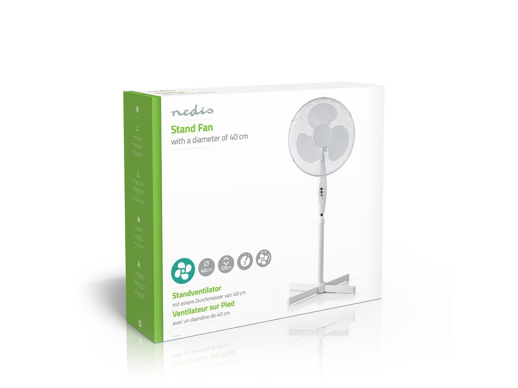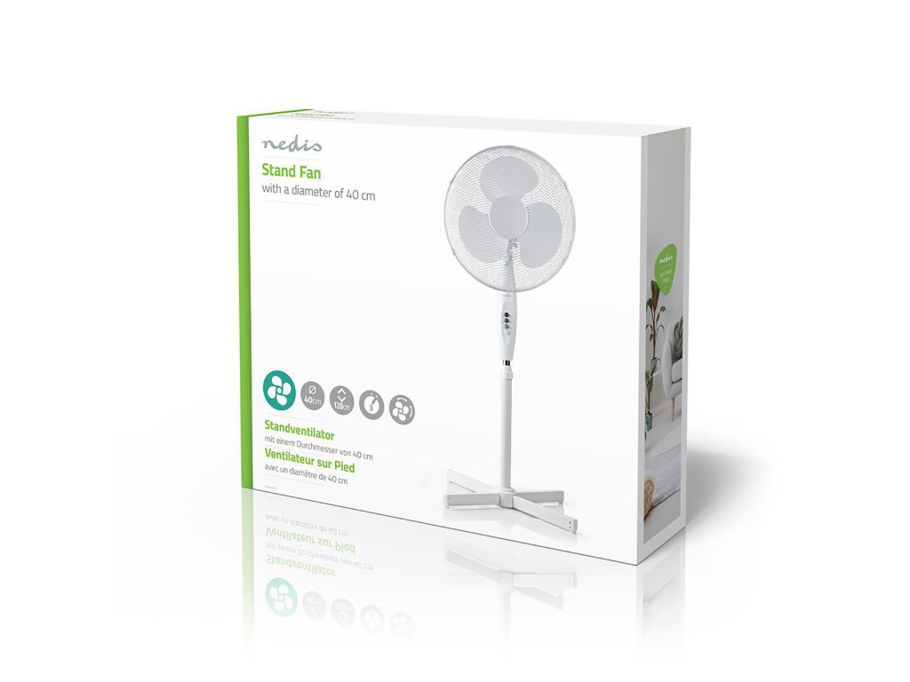 Nedis FNST10CWT40 ventilátor stojanový 40 cm, 45 W, funkce oscilace, bílá