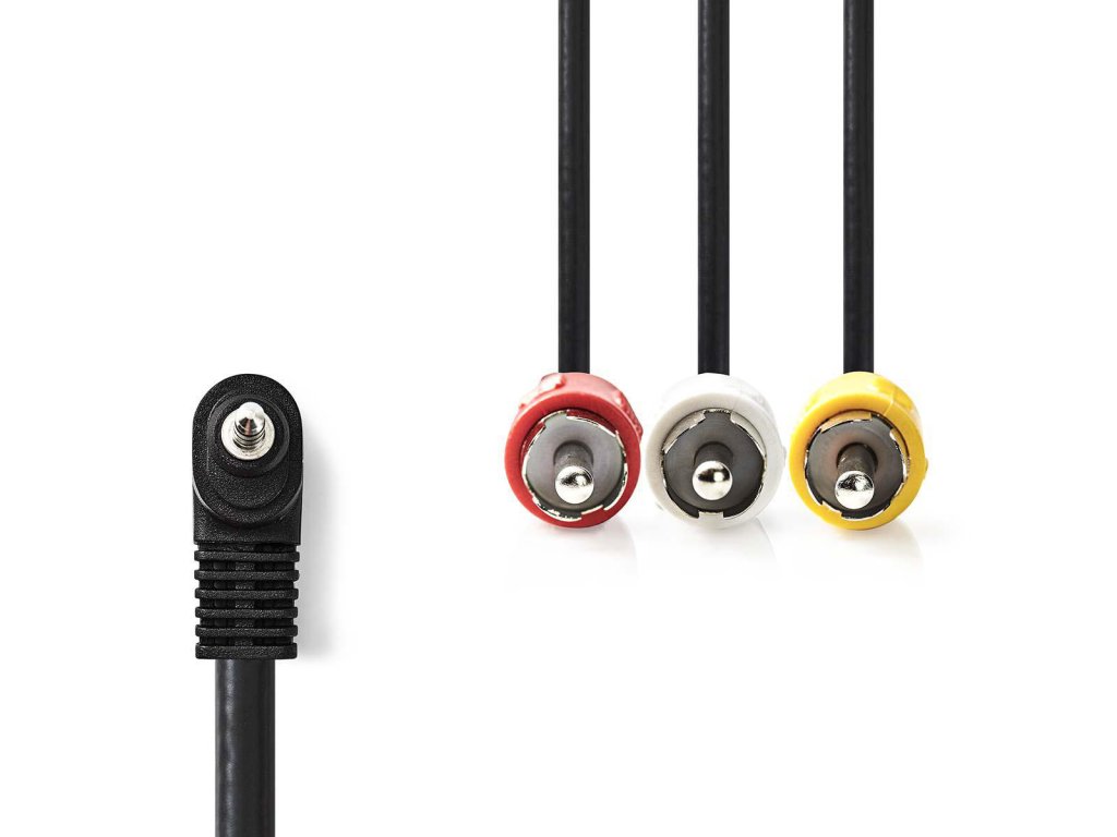 Nedis® propojovací audio/video kabel s konektory 4 pinový jack 3.5 mm úhlová zástrčka na 3 x CINCH (RCA) zástrčka. Vhodný např. pro připojení analogové kamery k televizoru. Délka 1 m.