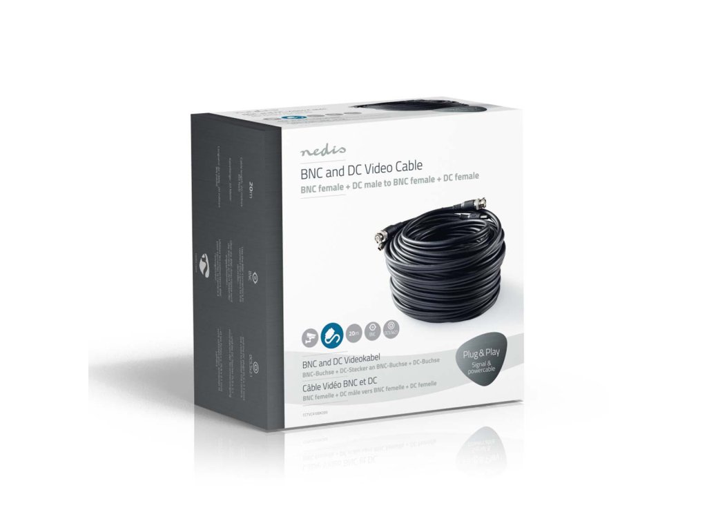Značkový kvalitní Nedis® propojovací koaxiální CCTV kabel s konektory BNC a současně DC napájecími konektory. Vhodný pro kompletní funkční připojení bezpečnostní kamery jedním kabelem. Délka 20 m.