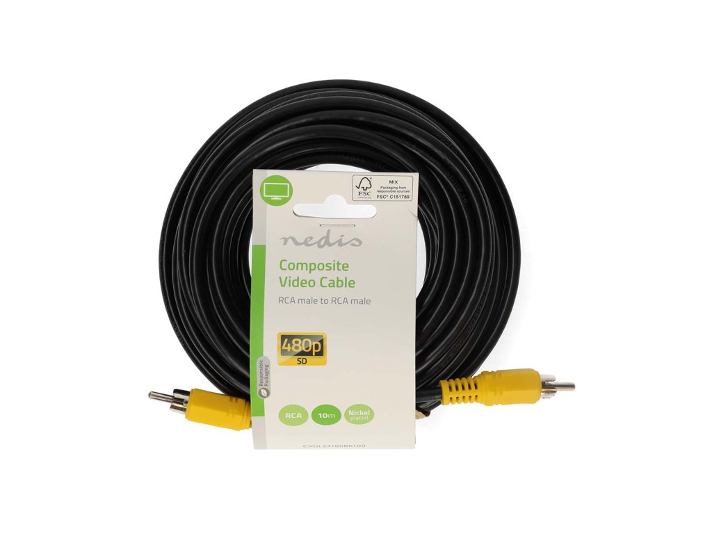 Nedis® propojovací kompozitní video kabel s konektory 1 xCINCH (RCA) zástrčka na 1 xCINCH (RCA) zástrčka. Vhodný např. pro připojení analogové kamery nebo DVD přehrávače k televizoru. Délka 10 m.