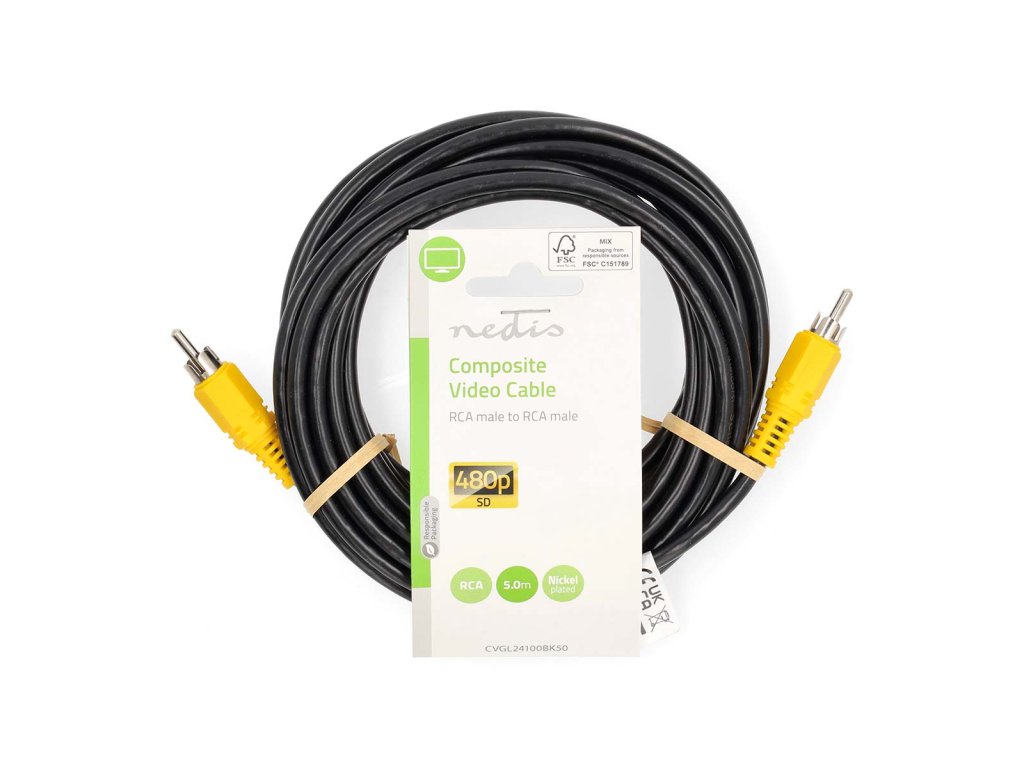 Nedis® propojovací kompozitní video kabel s konektory 1 xCINCH (RCA) zástrčka na 1 xCINCH (RCA) zástrčka. Vhodný např. pro připojení analogové kamery nebo DVD přehrávače k televizoru. Délka 5 m.