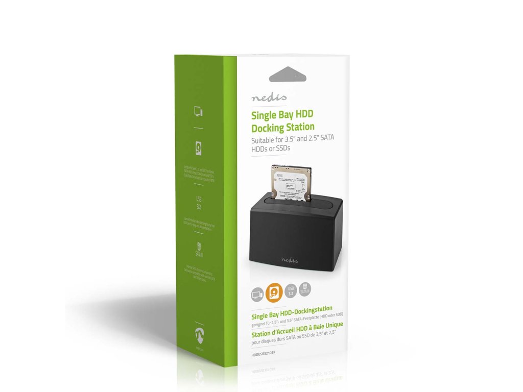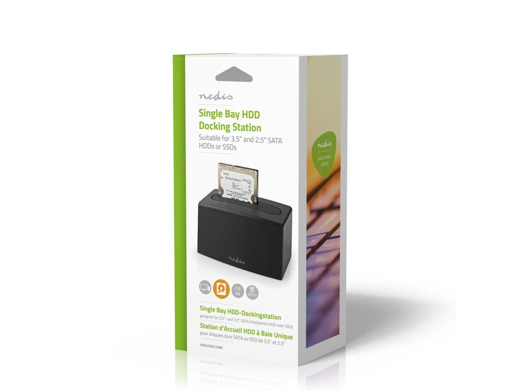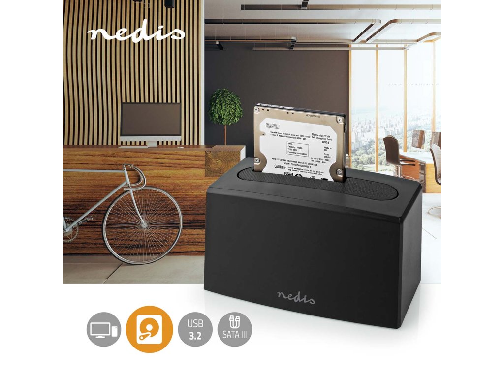 Nedis HDDUSB3210BK dokovací stanice pro pevné disky, USB 3.2 Gen1, SATA, napájecí adaptér